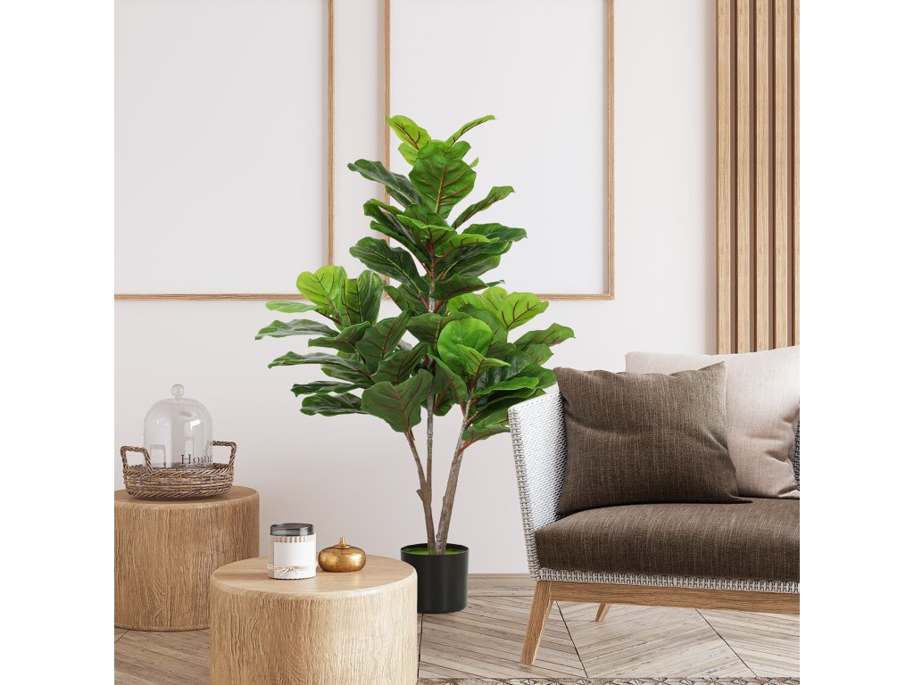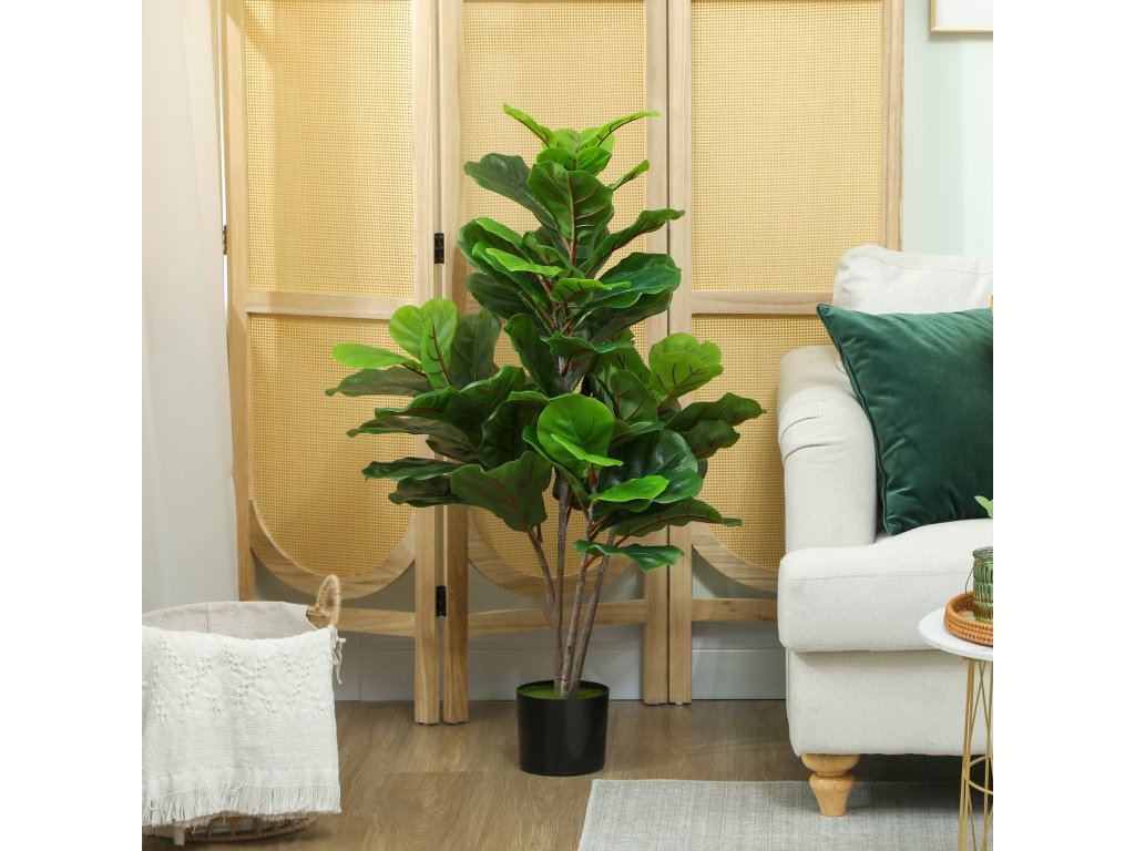 HOMCOM Umělé housle fíkovník 110cm umělá rostlina, plastové umělé rostliny v květináči, dekorace dárek