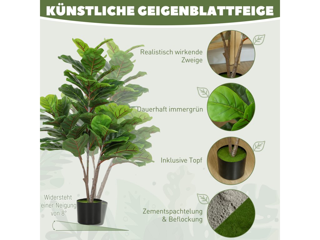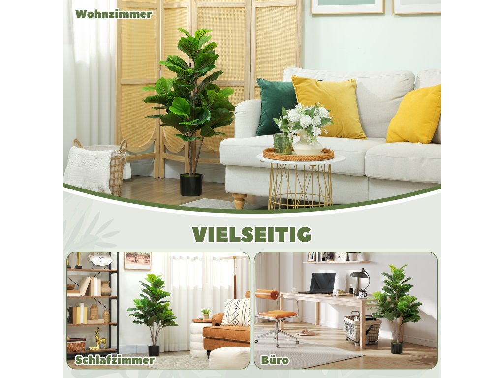 - Živě vypadající listy: Umělá rostlina je vybavena 60 listy z PEVA a drátěnými větvemi, takže dokonale napodobuje přirozený vzhled skutečného houslového fíku a umocňuje atmosféru každé místnosti.