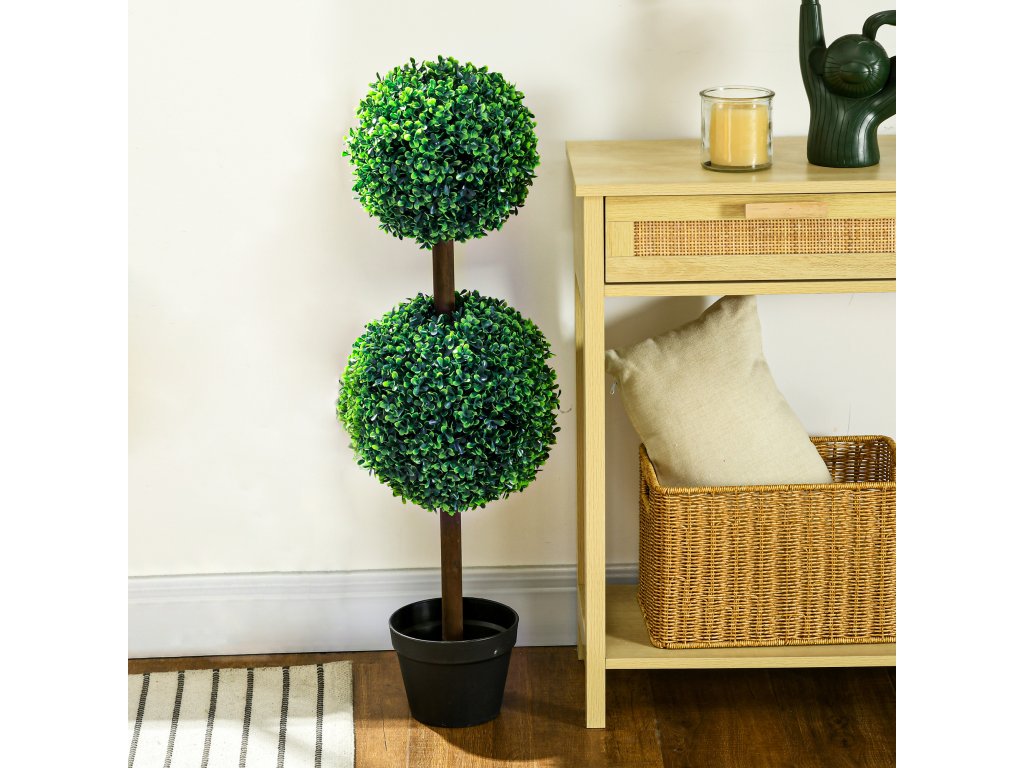- Informace o umělých rostlinách: Celková výška: 90H cm. Velikost kulovitého keře: Ø20, Ø25 cm. Velikost květináče: Ø18 x 14H cm. Montáž není nutná