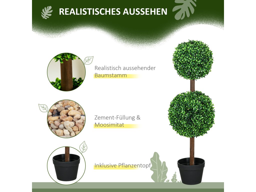 - Včetně květináčů: Naše umělé stromy jsou dodávány připravené k použití, již zasazené do černých květináčů a stabilizované cementovou výplní. Díky tomu není nutné hledat vhodné květináče