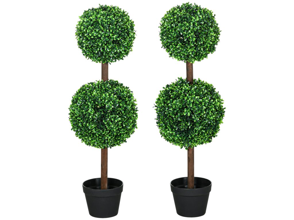 HOMCOM Umělé rostliny, sada 2 ks zimostráz, 90 cm umělá rostlina, umělý strom, dekorativní rostlina pro interiér i exteriér, zelená barva
