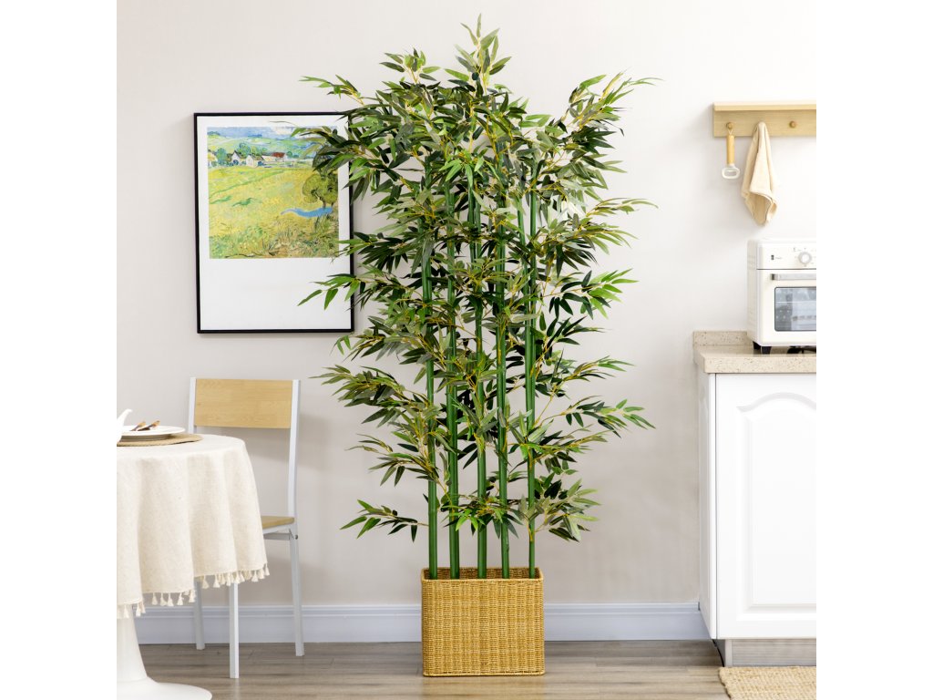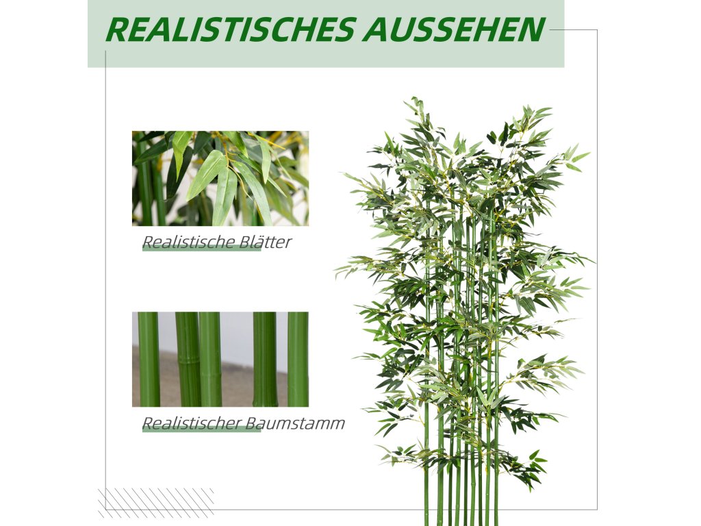 HOMCOM Umělý bambus, umělá rostlina, dekorativní rostlina, reálný vzhled, snadná péče, pro domácí použití, výška 180 cm, zelená barva