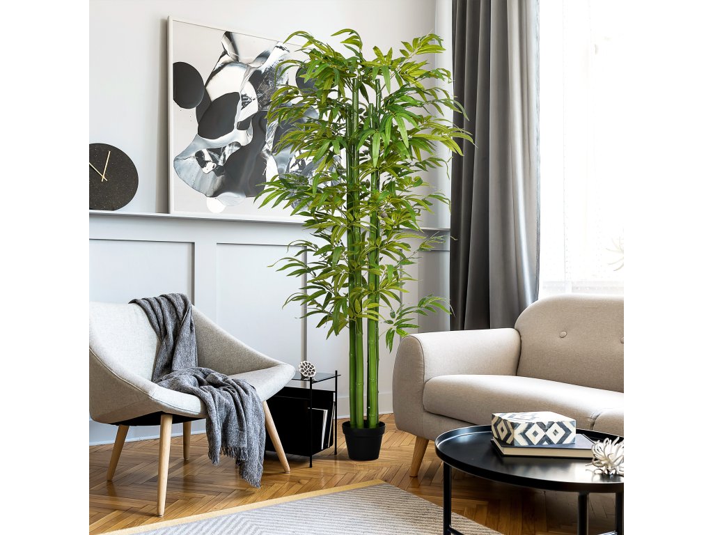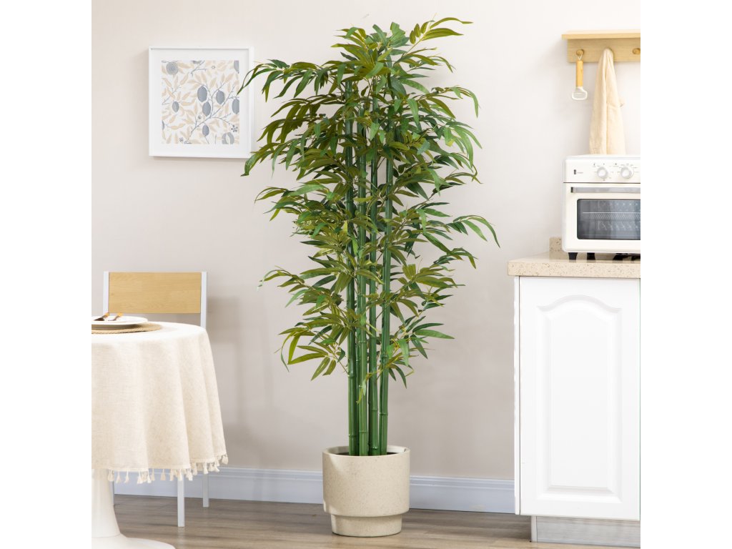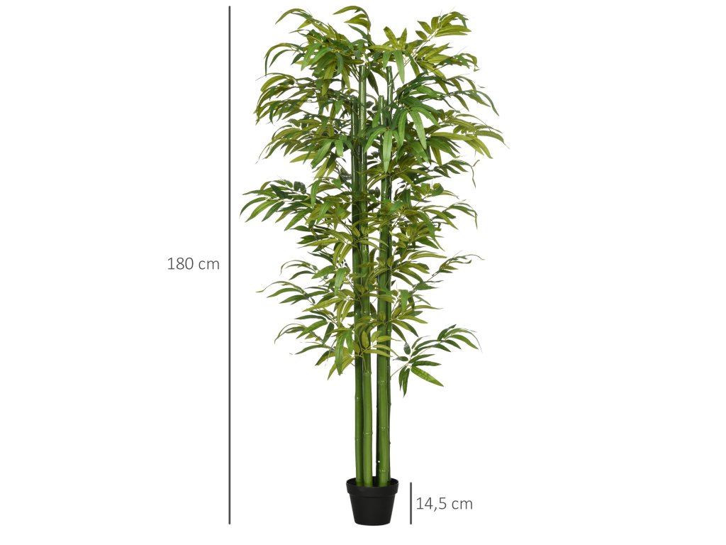 HOMCOM Umělý bambus realistického vzhledu, s květináčem, pro vnitřní použití, 180 cm, zelená/černá barva