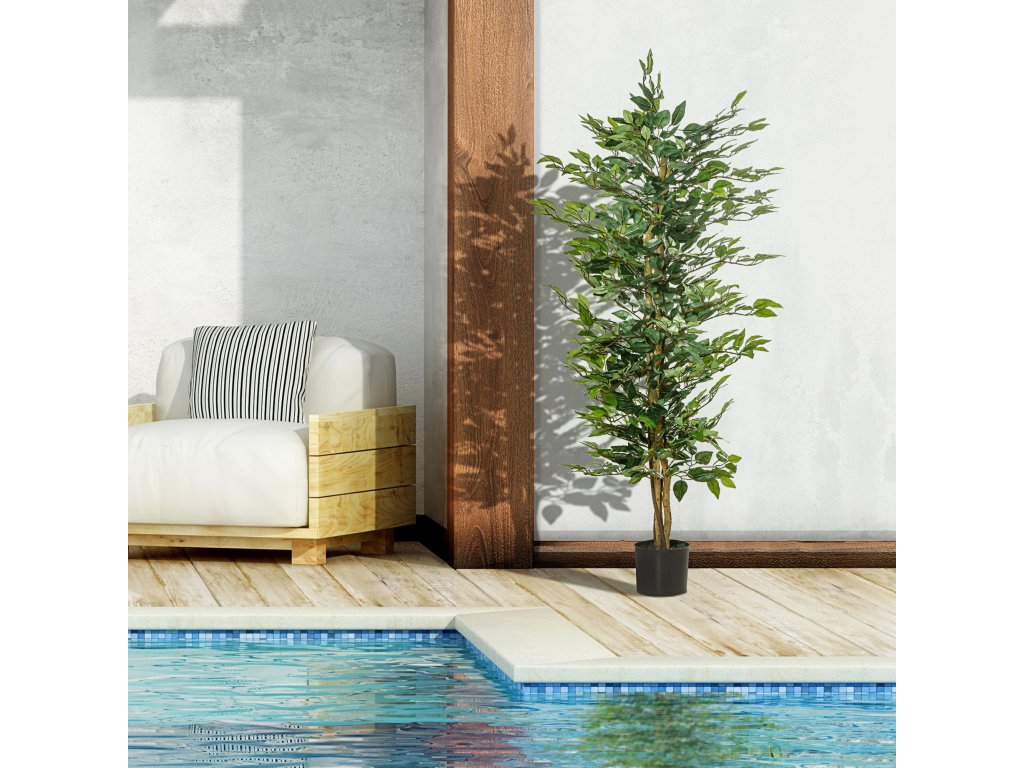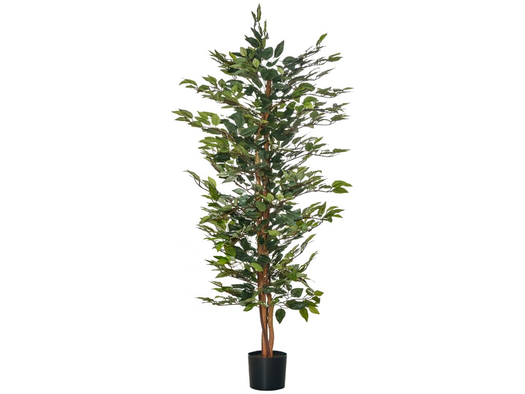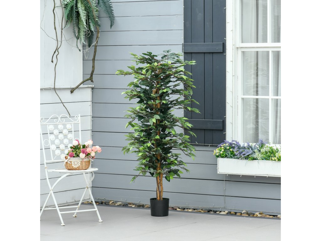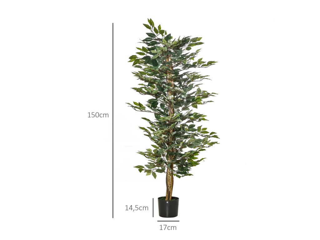 HOMCOM Umělý fíkus velký 150 cm umělý strom, umělá rostlina, plastové umělé rostliny v květináči, falešná rostlina jako skutečná pro obývací pokoj ložnici kancelář zahradu moderní dekorace dárek