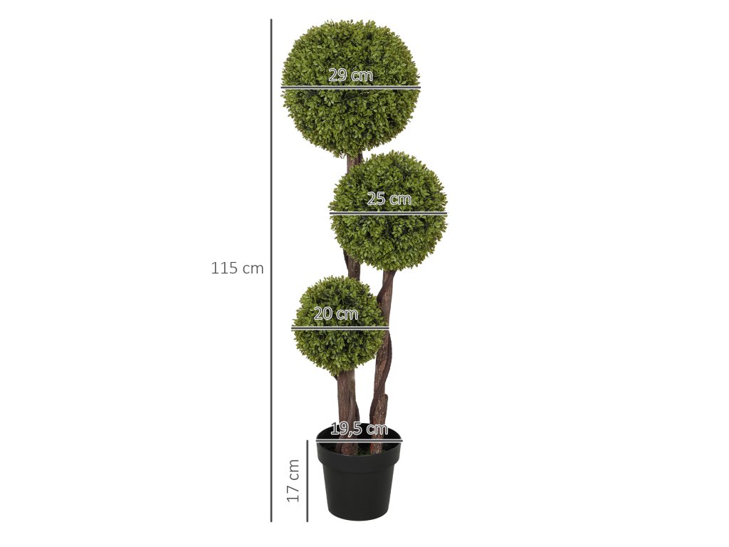 - Údaje o výrobku umělé rostliny: Celková výška: 115 cm. Velikosti keřů: Ø20 cm, Ø25 cm, Ø29 cm. Rozměry květináče: Ø19,5 x 17V cm. Montáž není nutná
