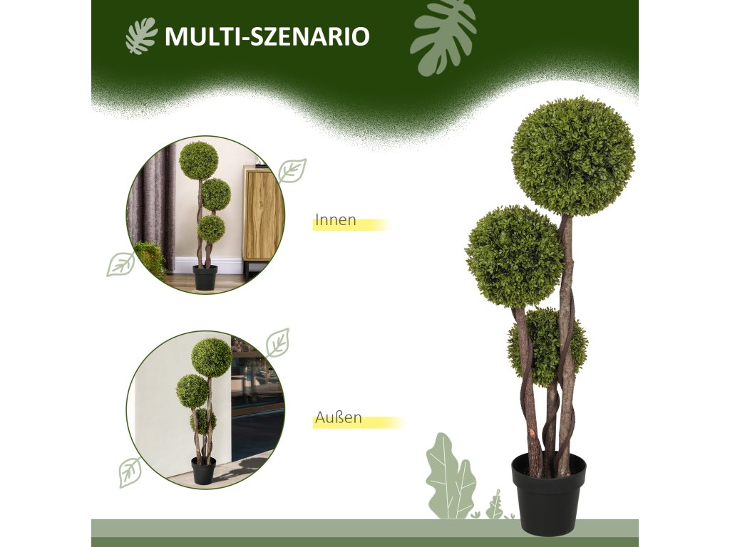 Truhlík HOMCOM vyrobený z odolného plastu zaujme klamně reálnými barvami a strukturou. Tato snadno udržovatelná umělá rostlina v květináči zůstává vždy svěží a atraktivní - bez nutnosti zalévání. Pevně ukotvený cementový květináč zaručuje stabilitu a umělá rostlina opticky zvýrazní váš obytný prostor, venkovní prostor nebo vstupní prostor vaší firmy.