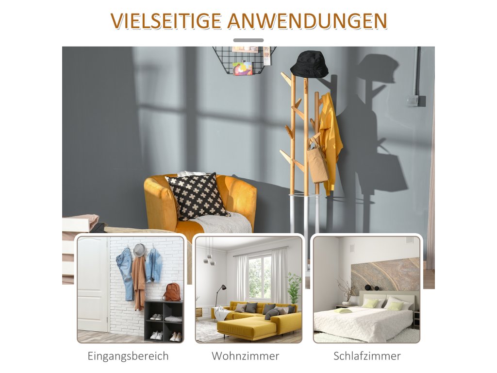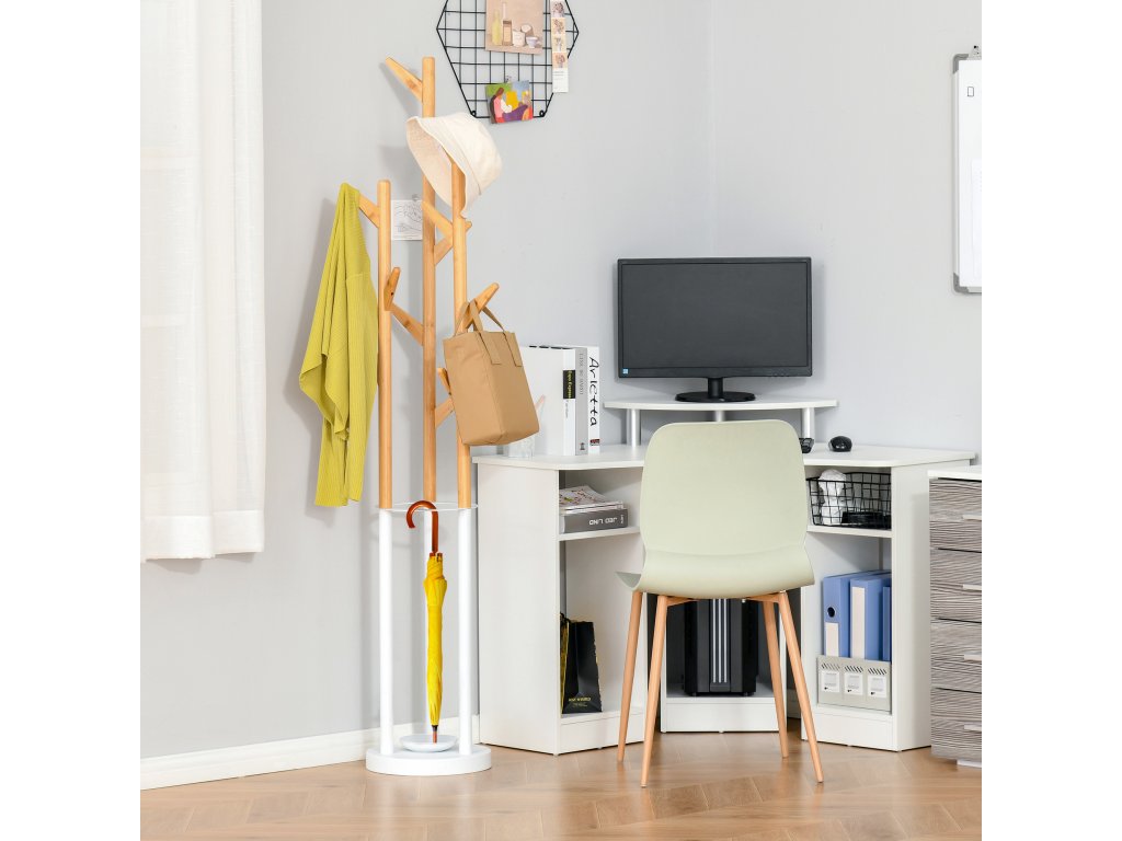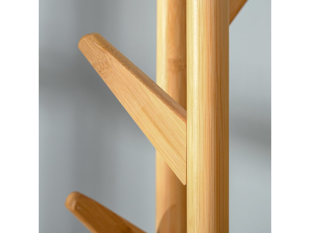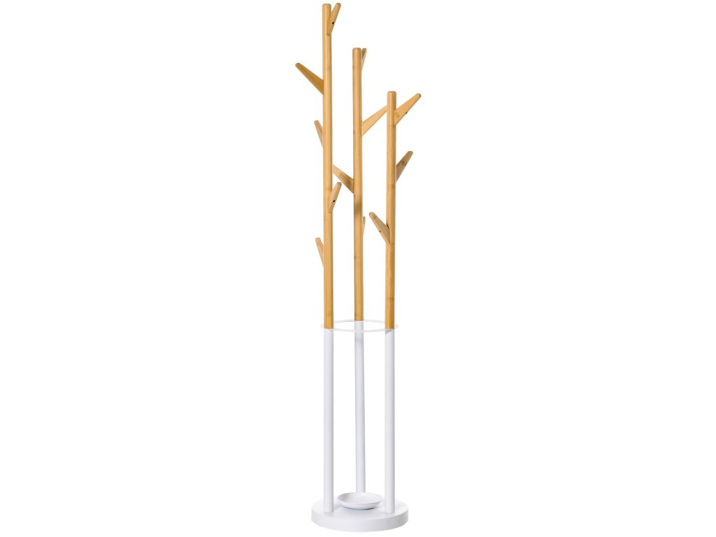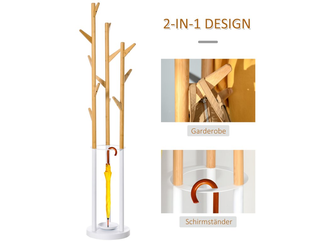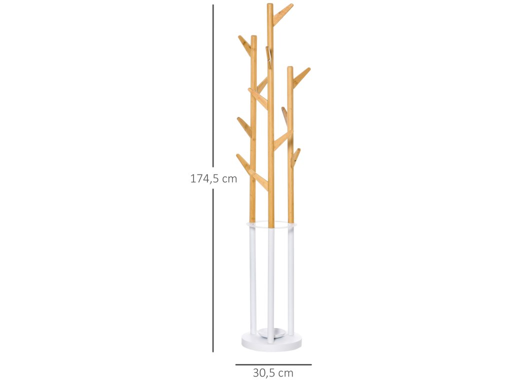 HOMCOM Věšák na kabáty, věšák s 12 háčky a stojanem na deštníky, věšák ve tvaru stromu, moderní věšák na oblečení, klobouky, tašky, do obývacího pokoje, ložnice, bambus, příroda+bílá