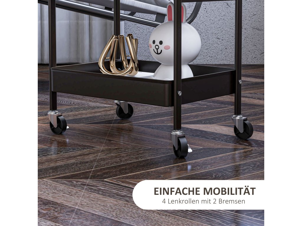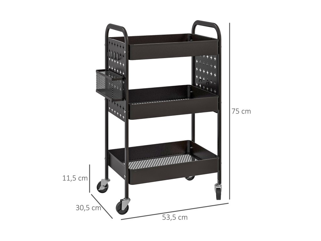 HOMCOM Víceúčelový vozík Kuchyňský vozík, 3 police, 4 kolečka, 53,5 cm x 30,5 cm x 75 cm, černý