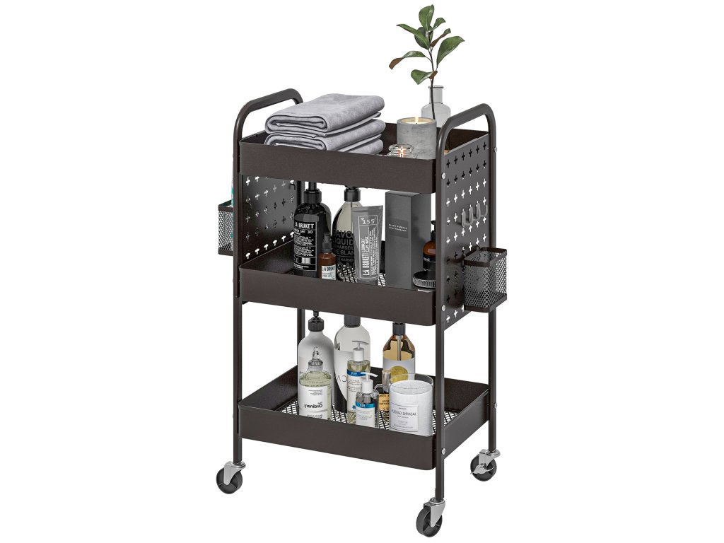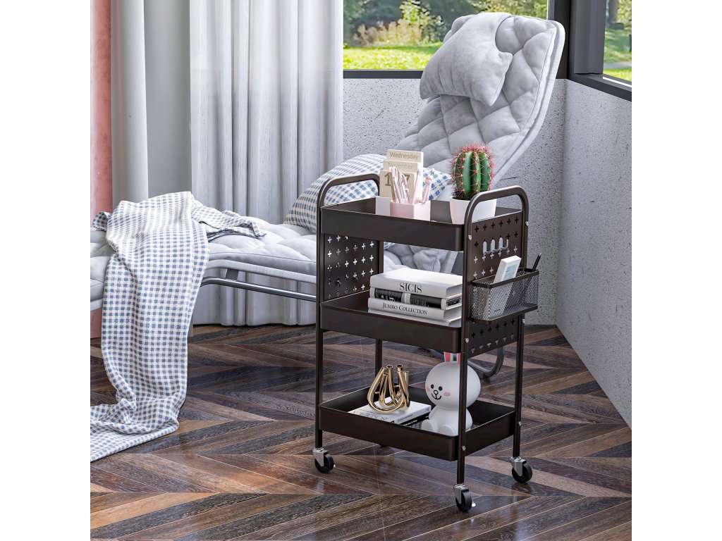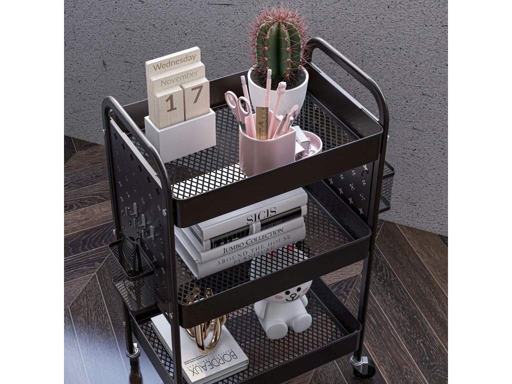 - Všestranné využití: Díky kompaktnímu designu a flexibilním kolečkům jej lze použít jako skladovací vozík, koupelnový vozík, kuchyňský vozík, servisní vozík a mnoho dalšího. Vhodný do kanceláře, kuchyně, obývacího pokoje, koupelny atd.