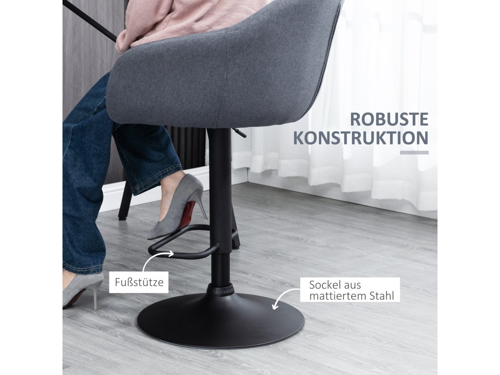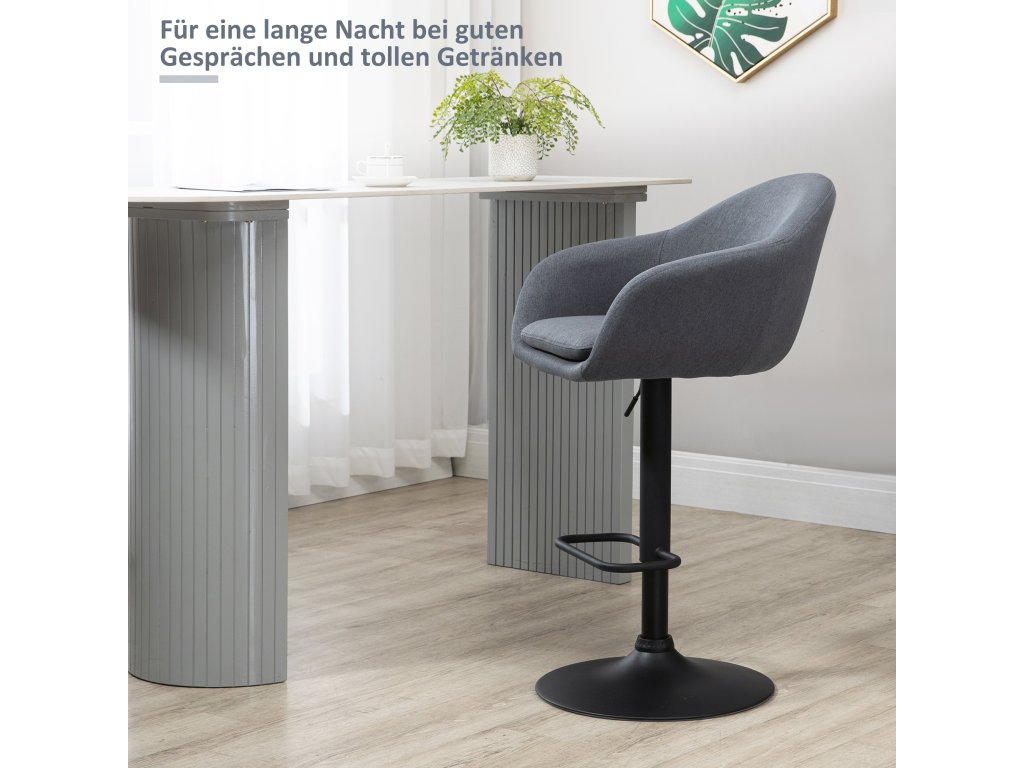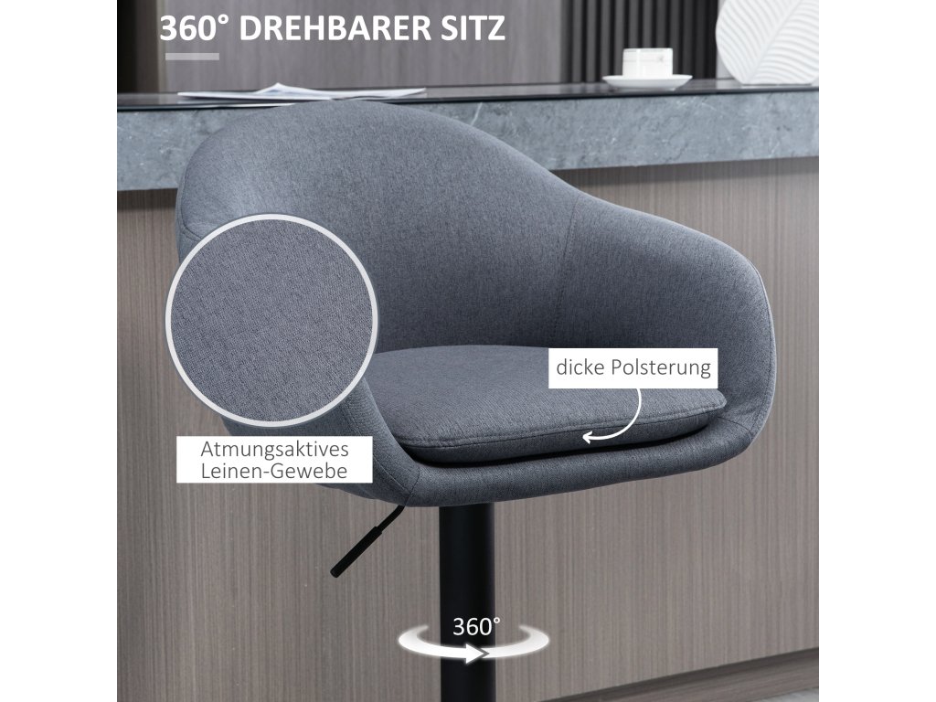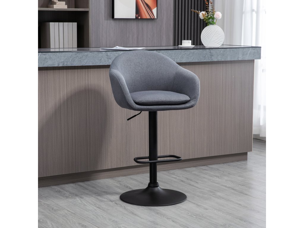 Barová židle HOMCOM s podnožkou kombinuje stylový design a praktické funkce pro moderní domácnost. Je výškově nastavitelná a vybavená funkcí otáčení a nabízí mladým profesionálům potřebnou flexibilitu a pohodlí. Nízké opěradlo a podnožka poskytují maximální pohodlí a oporu, zatímco moderní design v lněném vzhledu vylepší každý domácí interiér. Nezbytný doplněk pro každého, kdo si cení stylu, pohodlí a funkčnosti.