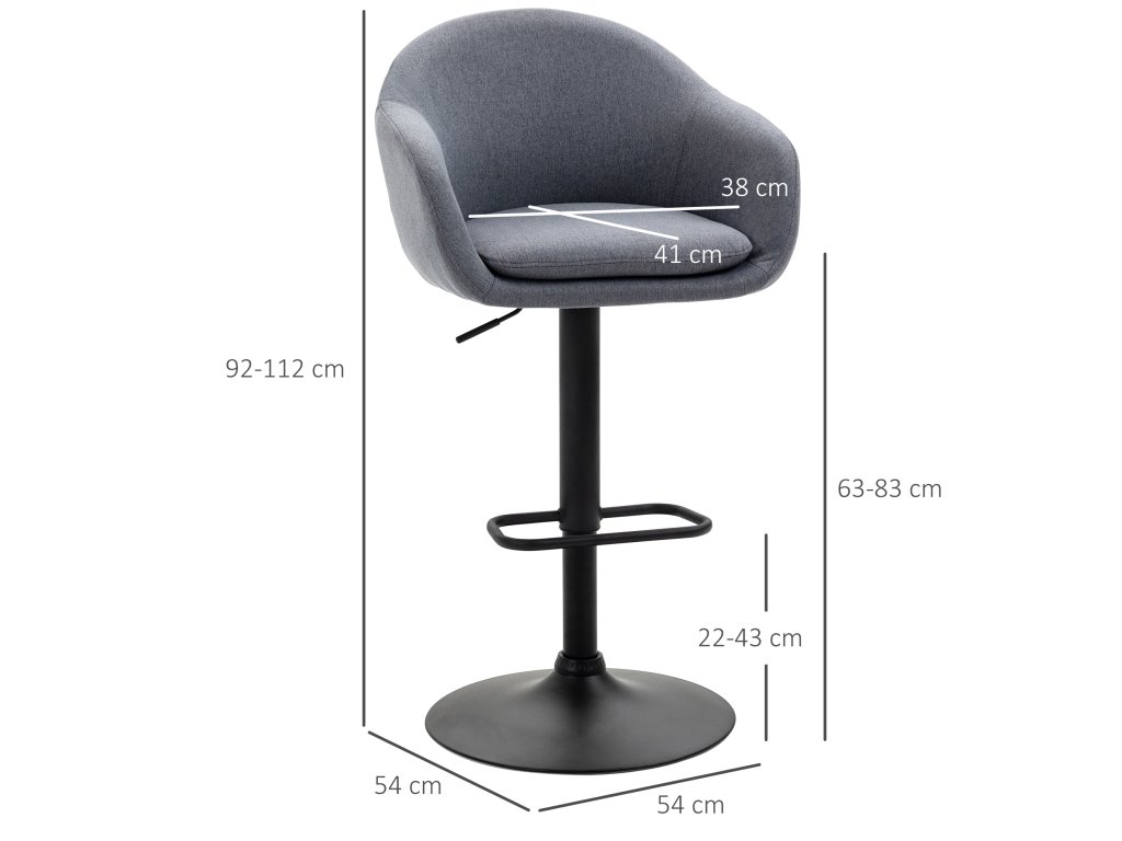 HOMCOM Výškově nastavitelná barová židle s opěradlem a podnožkou; vzhled lnu, 54 cm x 54 cm x 112 cm, šedá barva