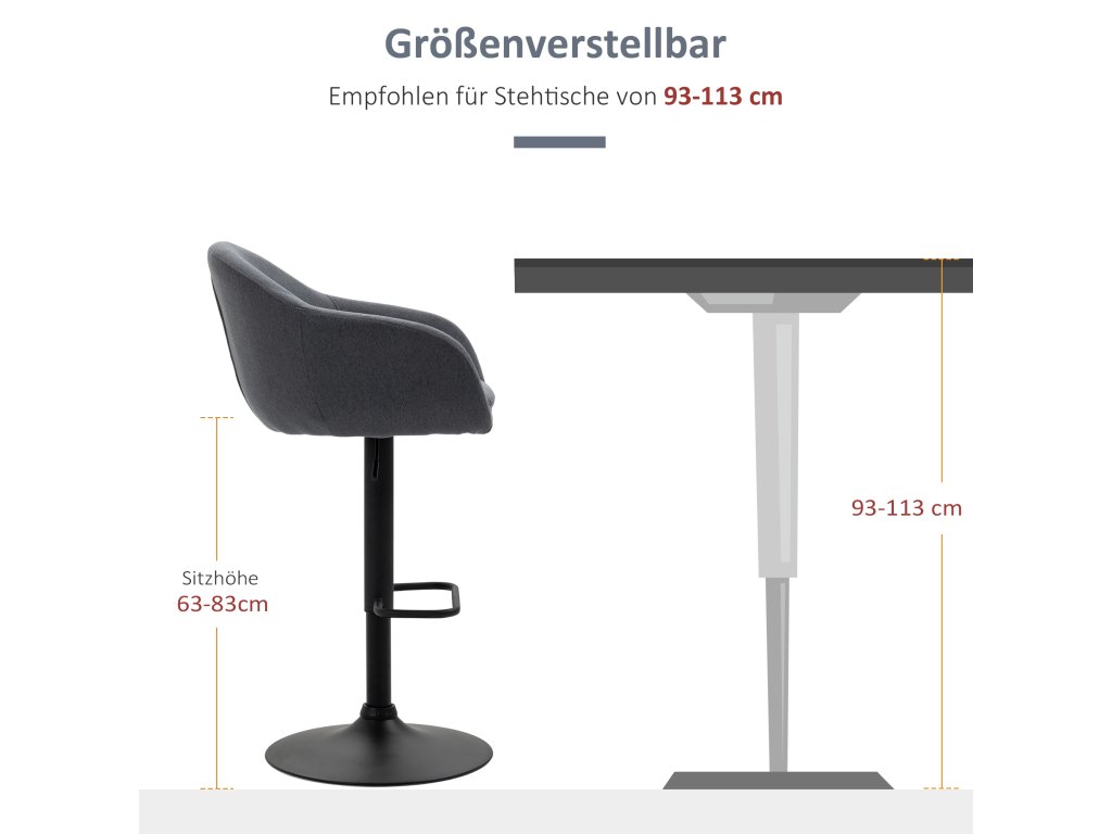 - ✔ Vhodná výška barového stolu: 93-113 cm