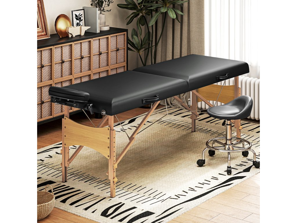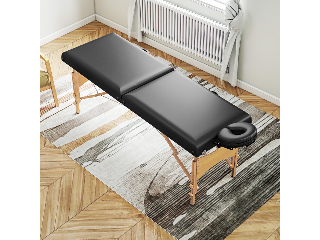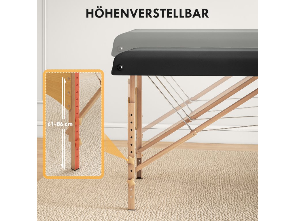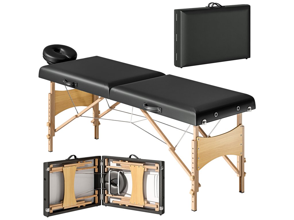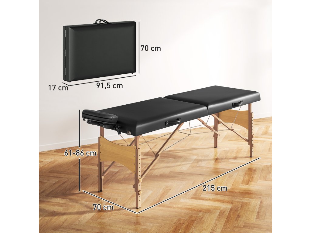 HOMCOM Výškově nastavitelný masážní stůl, dřevěný rám, skládací masážní lůžko, pěnové polstrování, černý