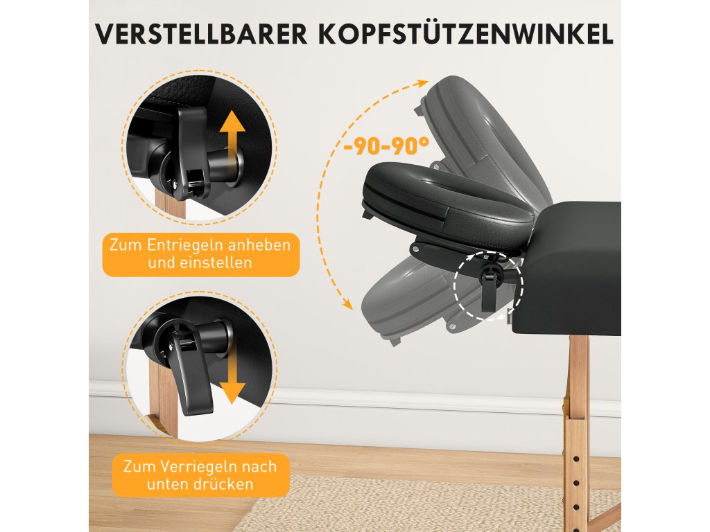 - ✔ Nastavitelná výška od 61 do 86 cm. Masážní stůl s opěrkou hlavy nastavitelnou v rozsahu 0 až 90° pro pohodlí a flexibilitu
