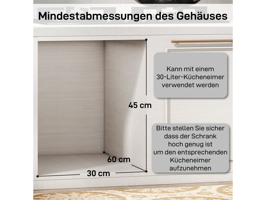 - Důmyslný design: Víko odolné proti mrazu účinně zachycuje pachy a udržuje vaše prostředí svěží. Vnitřní koše na odpadky jsou opatřeny úchyty pro snadné a čisté vyjmutí a pohodlné čištění