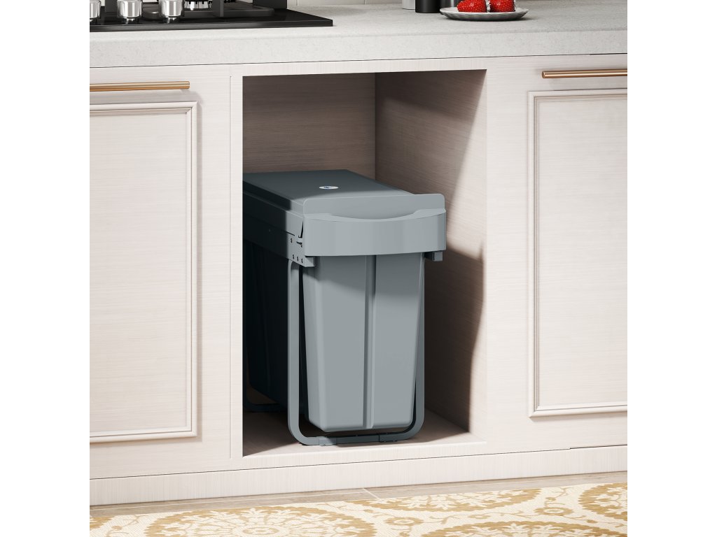 HOMCOM Výsuvný odpadkový koš, kuchyňský odpadkový koš se 2 vyjímatelnými koši, madlo, 30 l (20 l+10 l), kov, šedý