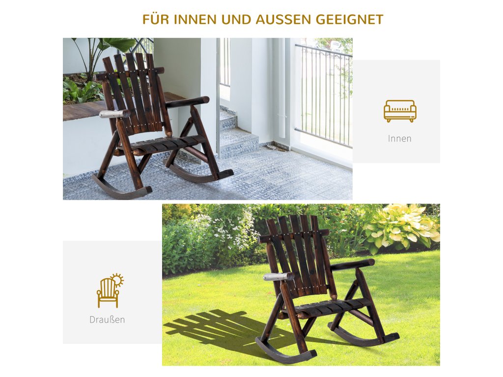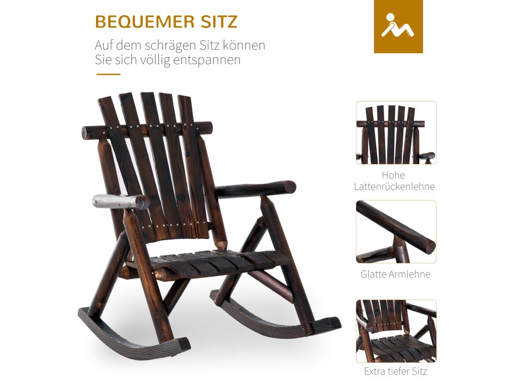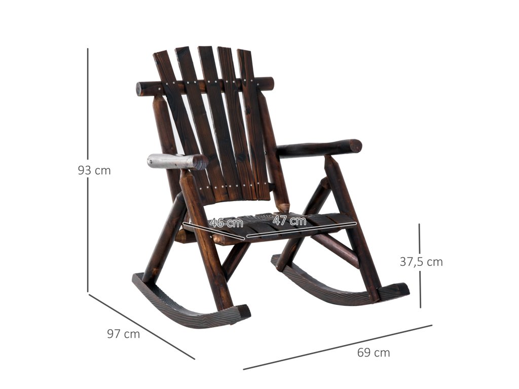 Houpací křeslo Outsunny s područkami, odolné proti povětrnostním vlivům, masivní dřevo, ohořelé, 97 x 69 x 93 cm