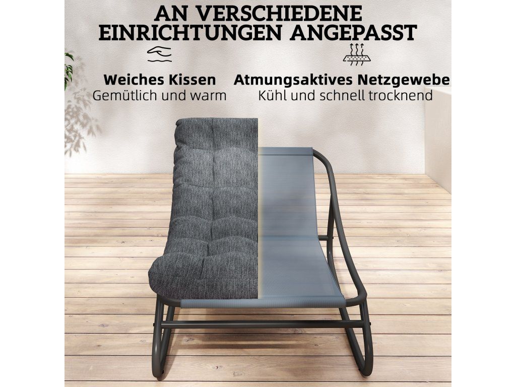 Houpací křeslo Outsunny se širokým síťovaným sedákem a tlustým polštářem, 101 x 66 x 63 cm, šedé