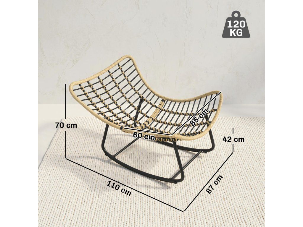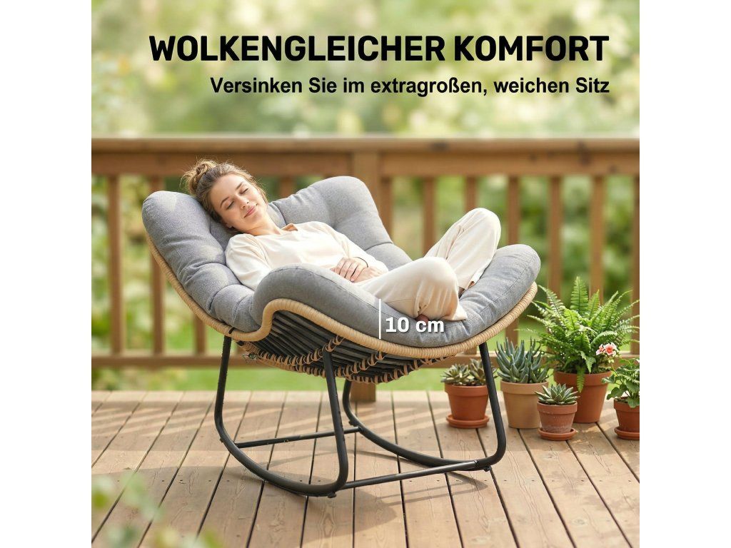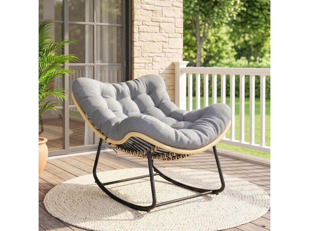 Houpací křeslo Outsunny z ratanu, zahradní lehátko s tlustými polštáři, zahradní houpačka do 120 kg, pro vnitřní i venkovní použití, 87 x 110 x 70 cm, šedá