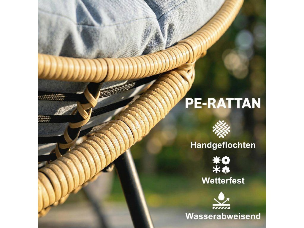 Snadná montáž a údržba: Jasný návod k montáži umožňuje snadnou instalaci. Odolná látka a trvanlivý ratanový povrch se snadno čistí, takže váš relaxační koutek bude vždy příjemný a dobře udržovaný.