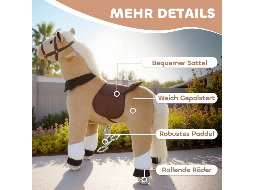✔ Měkká a plyšová tkanina houpacího koně zajišťuje pohodlnou a jemnou jízdu pro nejmenší