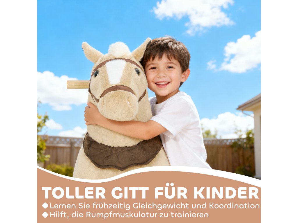 Pohodlný a odolný: Tento houpací kůň je potažen měkkým plyšem a vyroben z PP bavlny a nabízí útulný a k pokožce šetrný herní zážitek. Robustní kovový rám slibuje dlouhou životnost a zaručuje roky zábavy.