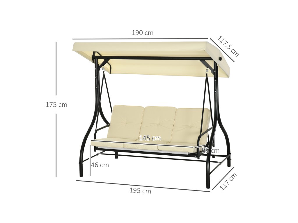 - třímístná houpačka: Tato třímístná hollywoodská houpačka nabízí prostor pro tři osoby, které se mohou jemně houpat a trávit čas společně