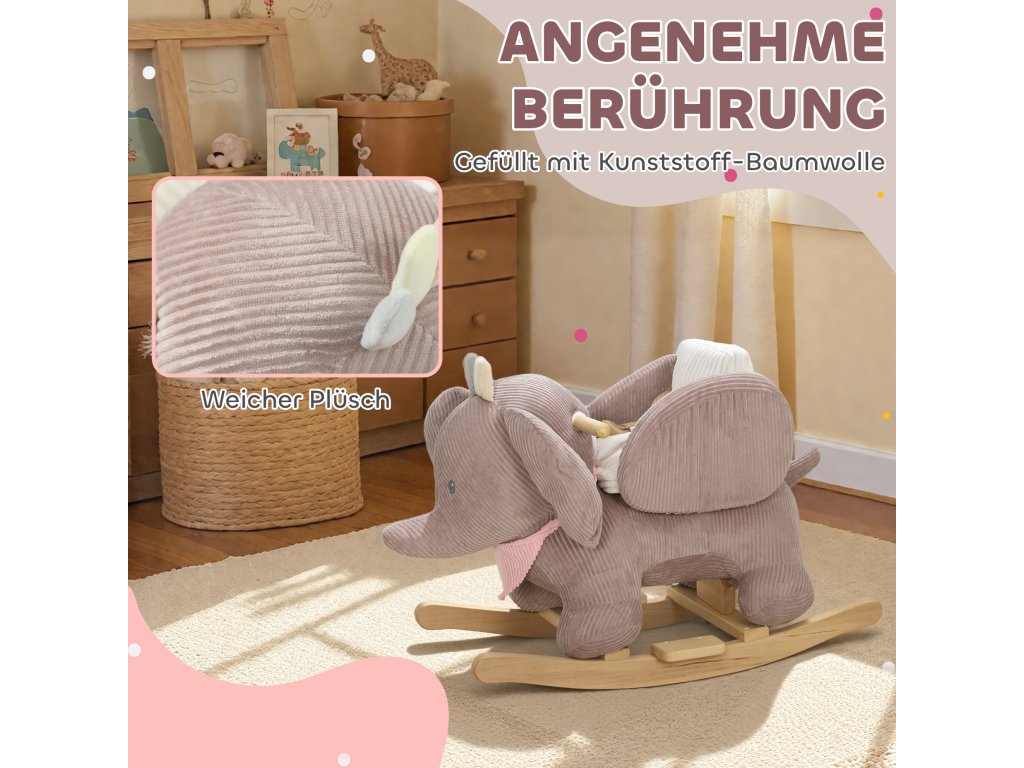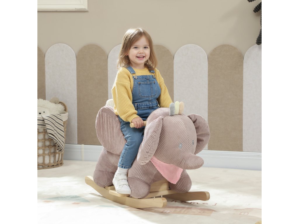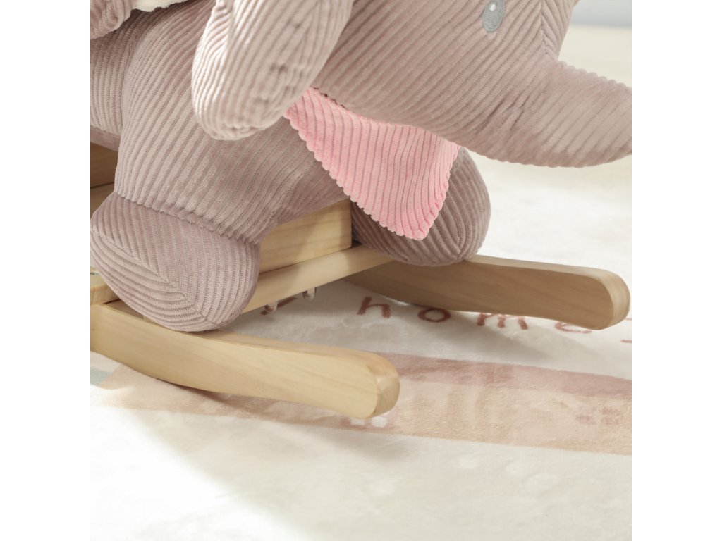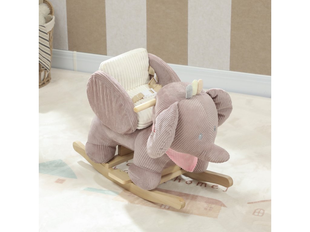 Tento rozkošný houpací kůň ve tvaru slona svými zábavnými zvuky promění každé houpání v radost. Houpací zvířátko je potažené měkkým plyšem a jemně ukolébává dítě pomocí bezpečného tříbodového pásu. Široké sedátko a pevná základna s snadno uchopitelnými rukojeťmi zajišťují stabilitu a rovnováhu. Tento houpací kůň je ideální pro děti a zaručuje bezpečnou a šťastnou hru.