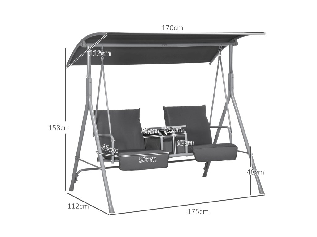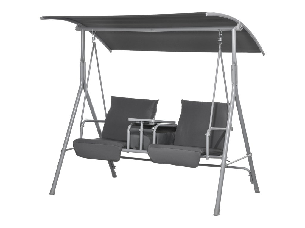 Houpačka Outsunny Hollywood, 2místná, se stříškou a stolkem, kovový rám, do 180 kg, 175x110x165 cm, černá