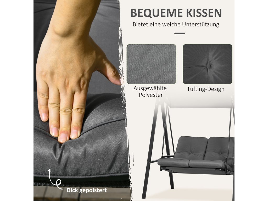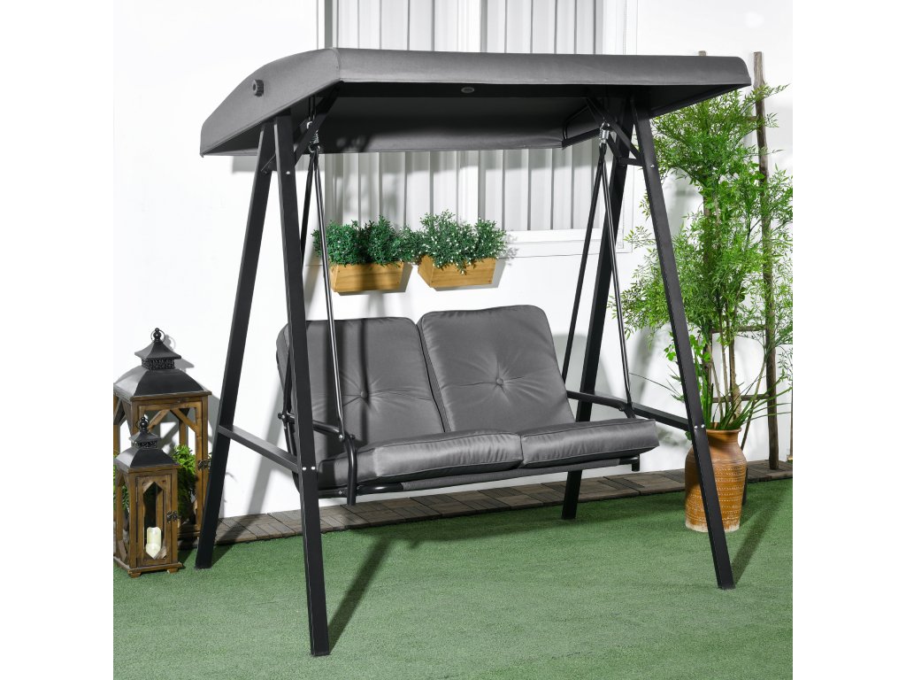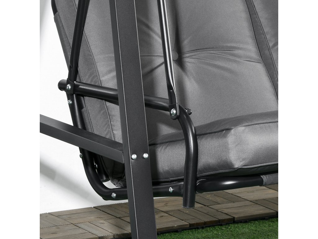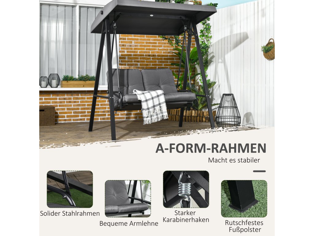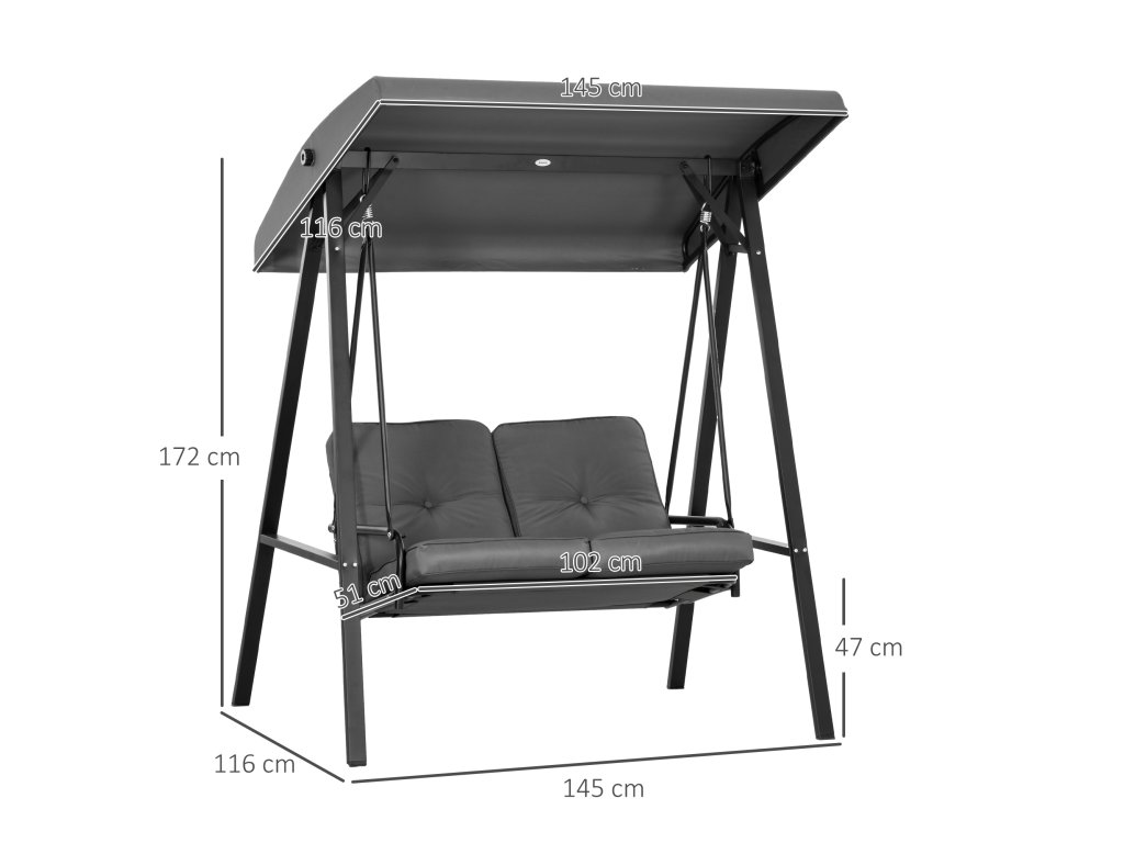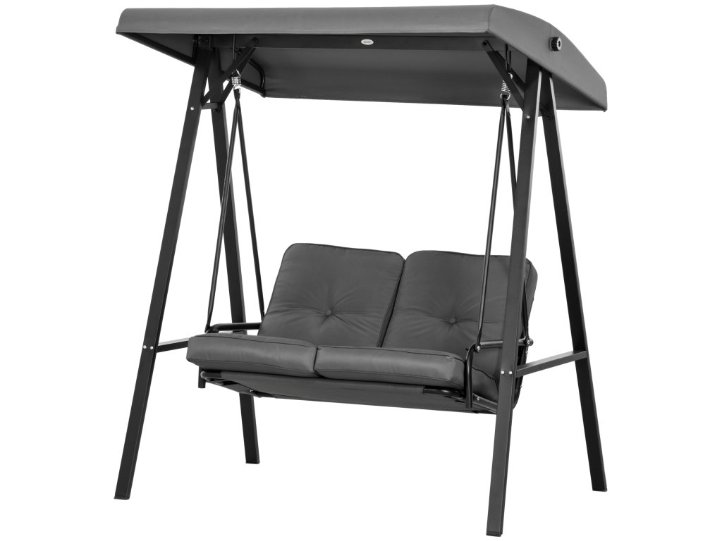 Houpačka Outsunny Hollywood, dvoumístná zahradní houpačka s nastavitelnou střechou, max. nosnost 220 kg, 145 x 116 x 172 cm, tmavě šedá