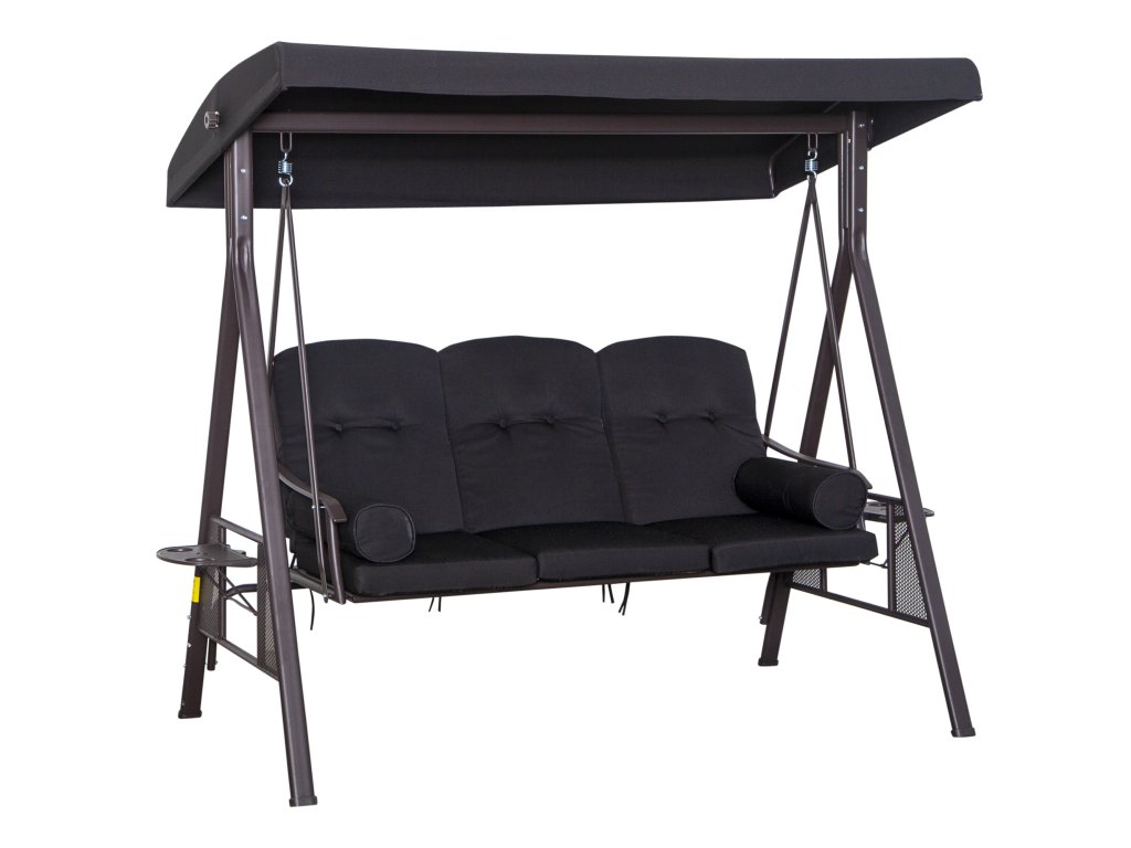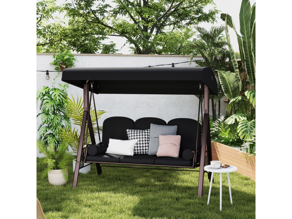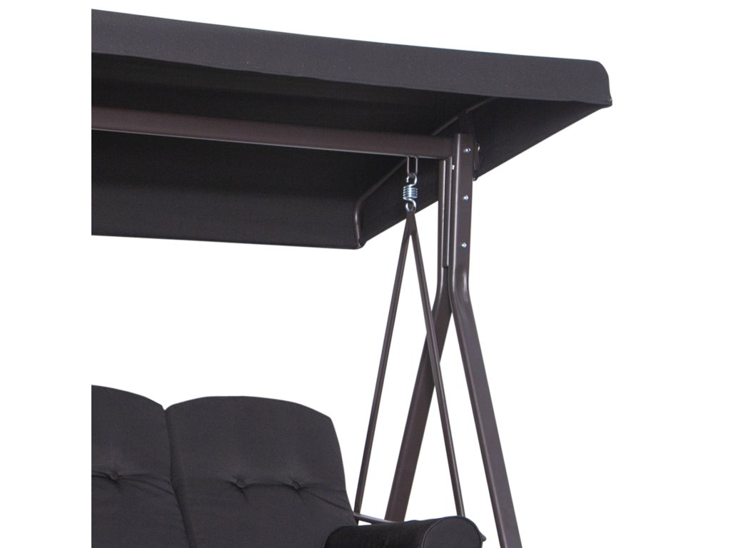 Houpačka Outsunny Hollywood pro 3 osoby, sklápěcí střecha, kovový rám, hnědá+černá, 116 x 206 x 183cm