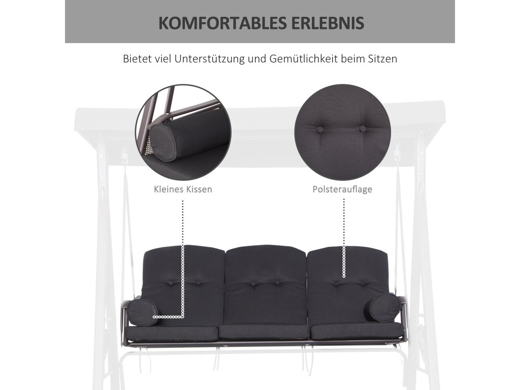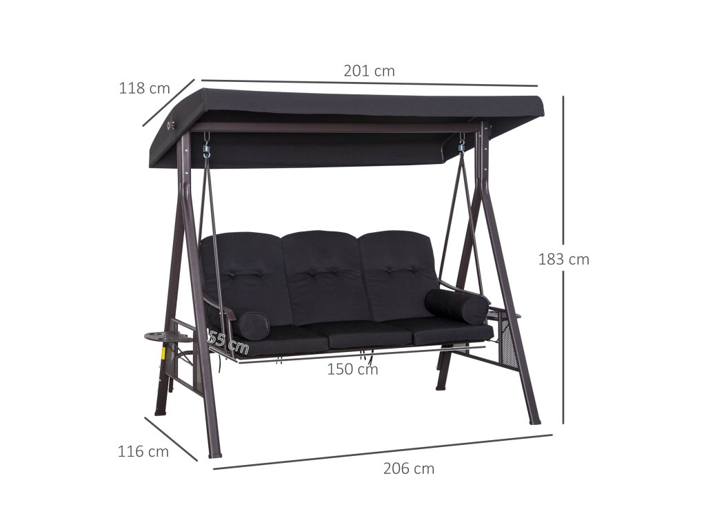 - Elegantní design: Tato elegantní barevná kombinace dodává 3místné houpačce Hollywood stylový vzhled pro hodiny odpočinku venku. Tato houpačka je dokonalým doplňkem vaší zahrady nebo terasy.