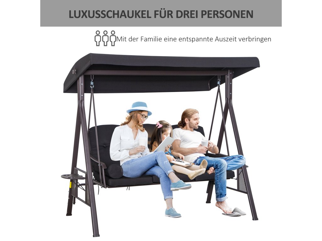 Snídejte na terase, užívejte si slunce, poseďte s přáteli a rodinou na čerstvém vzduchu: S naší zahradní houpačkou pro dospělé od společnosti Outsunny můžete pohodlně sedět za každé situace. Je zde místo až pro tři osoby, které rámuje elegantní a zároveň robustně navržený kovový rám. O další pohodlí při sezení se postará 8 cm silné čalounění a kompaktní polička na občerstvení, chladné nápoje a dobrou knihu.