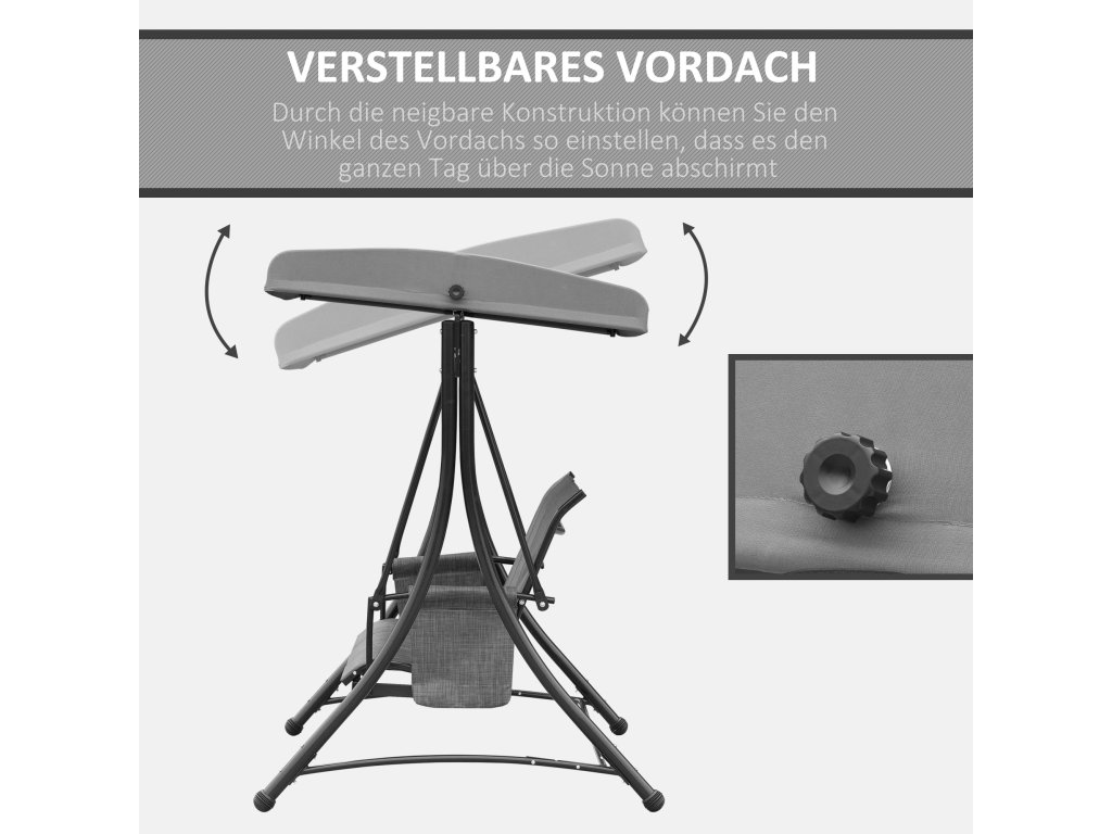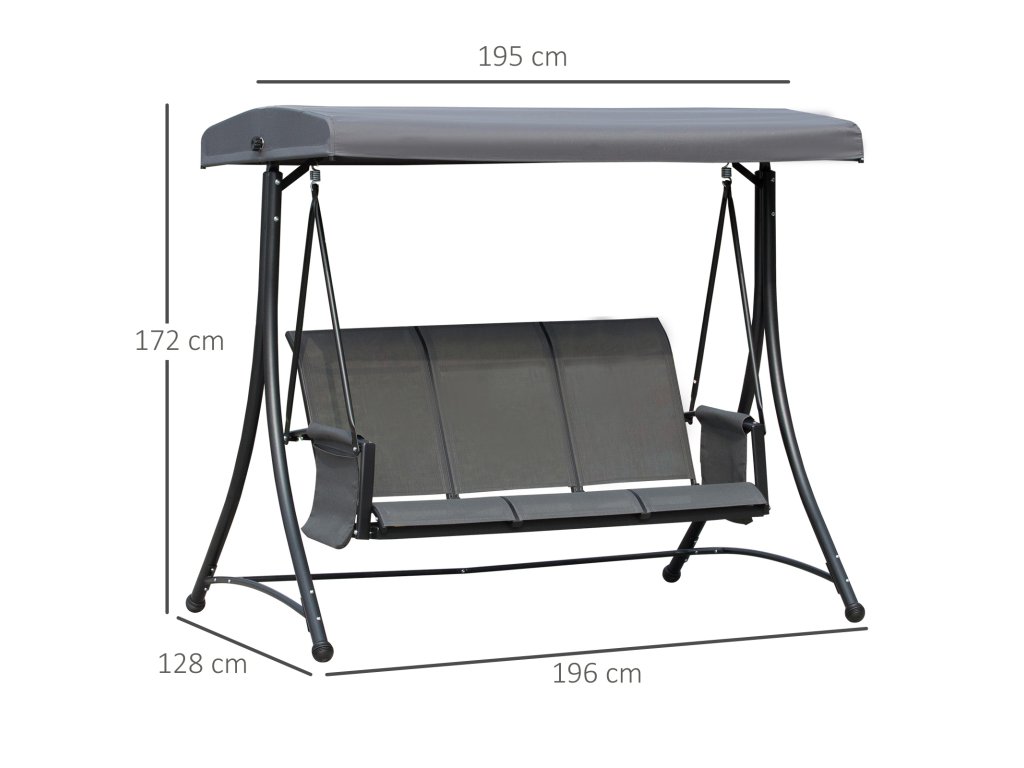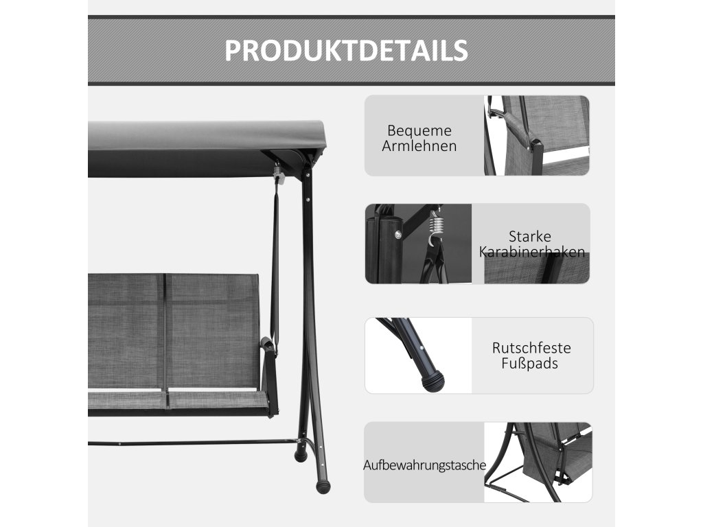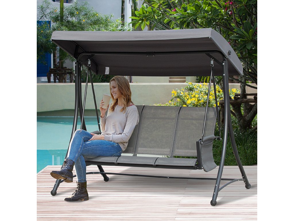 Houpačka Outsunny Hollywood s boční taškou, 3místná zahradní houpačka s nastavitelnou sluneční stříškou, houpací lavice, max. nosnost 300 kg, pro zahradu, terasu, 196 x 128 x 172 cm, tmavě šedá barva