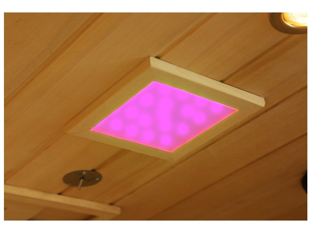Prostřednictvím kontrolního panelu je pak možné si měnit mezi 7 barevnými odstíny v sauně.