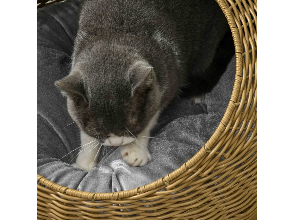Jeskyně pro kočky PawHut s omyvatelným polštářem, pro zvířata do 4 kg, vnitřní, umělý ratan, Ø50 x 31 cm, světle hnědá