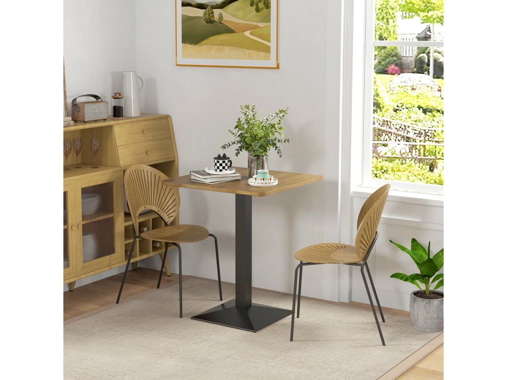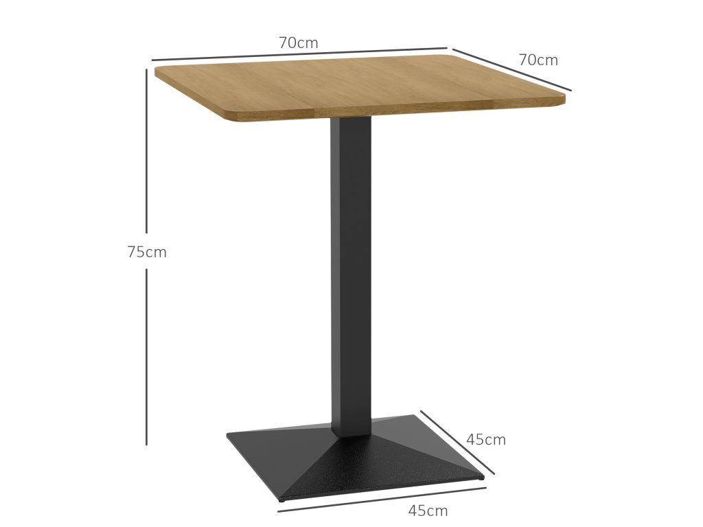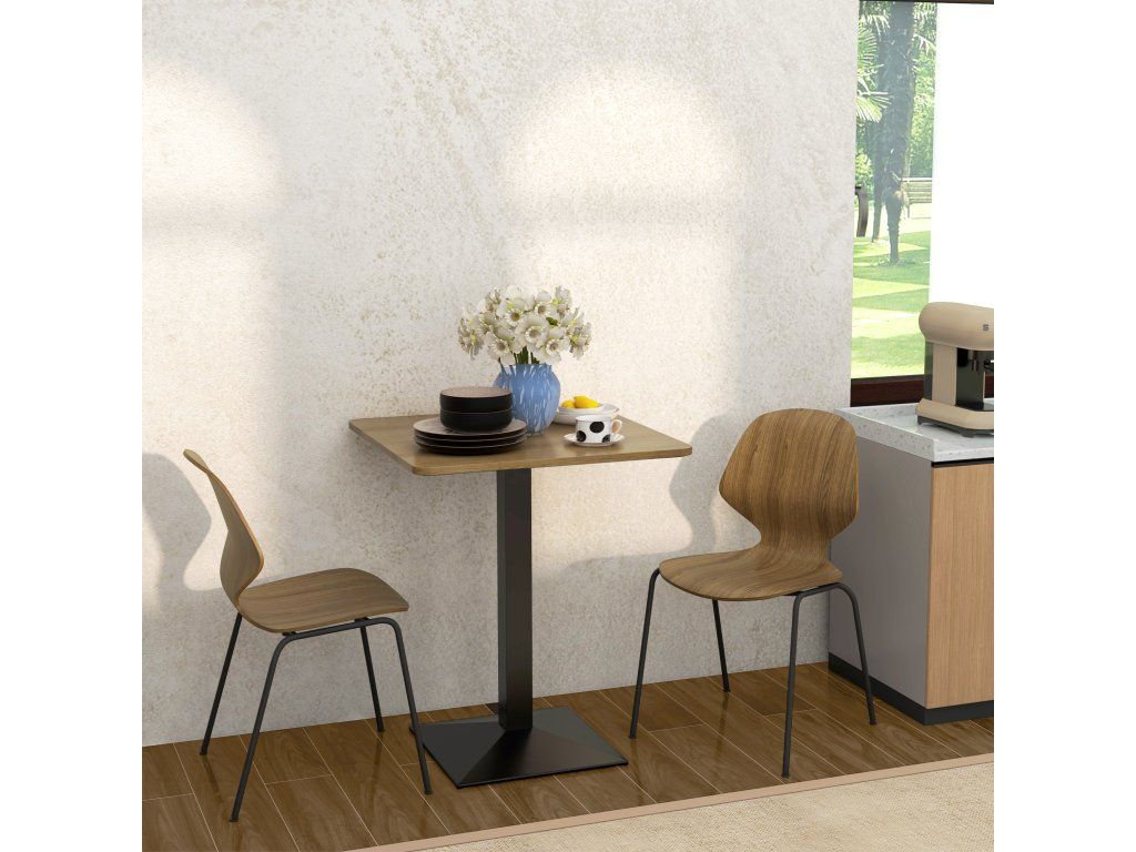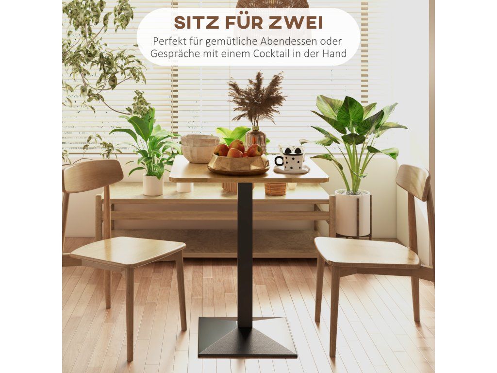 Jídelní stůl HOMCOM, Čtvercový kuchyňský stůl pro 2 osoby, Jídelní stůl s dřevěným vzhledem, ocelová podnož, 70 x 70 x 75 cm, tmavě hnědý
