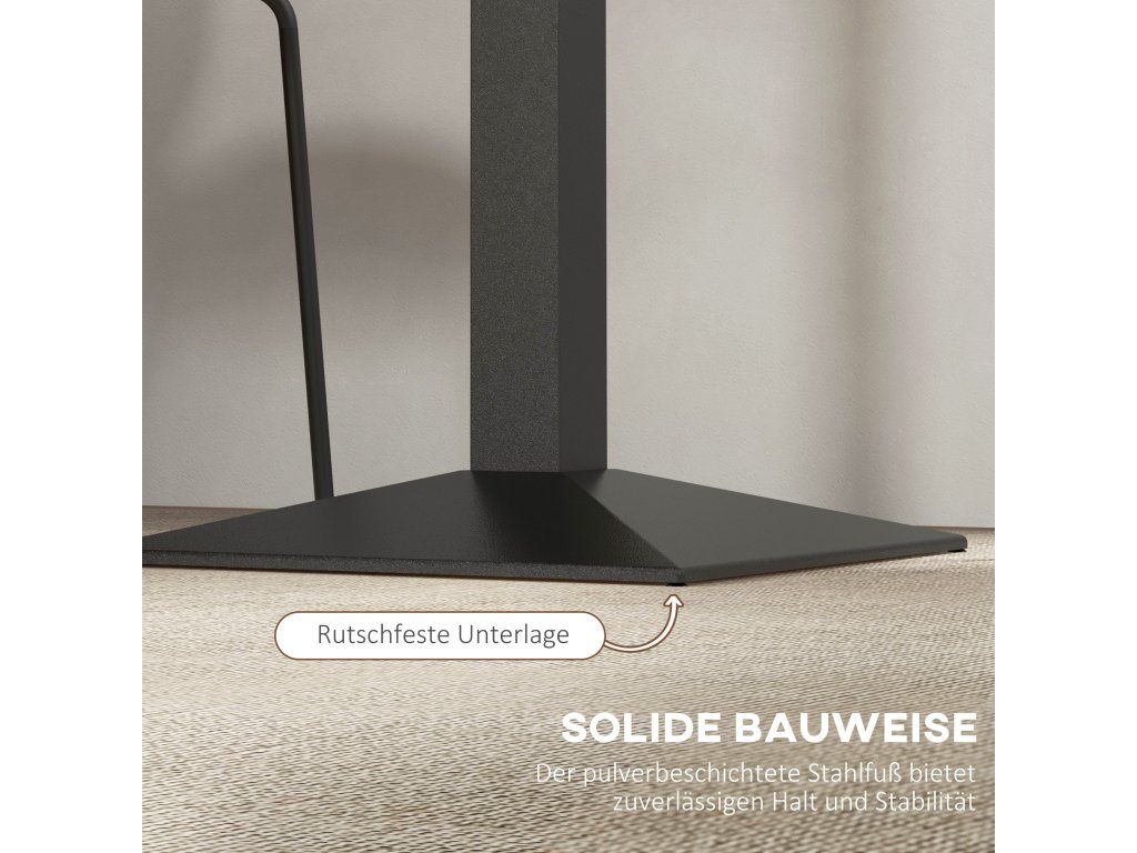 S tímto jídelním stolem HOMCOM se jídlo stane tak relaxačním a stylovým, jak si přejete. Kombinuje elegantní čtvercový tvar s deskou s efektem dřeva pro klasický vzhled. Práškově lakovaná ocelová základna poskytuje robustní a podpůrnou konstrukci a je vybavena nastavitelnou opěrkou pro větší stabilitu. Pohodlně se usaďte a užijte si čas s přáteli a rodinou – ať jste kdekoli.
