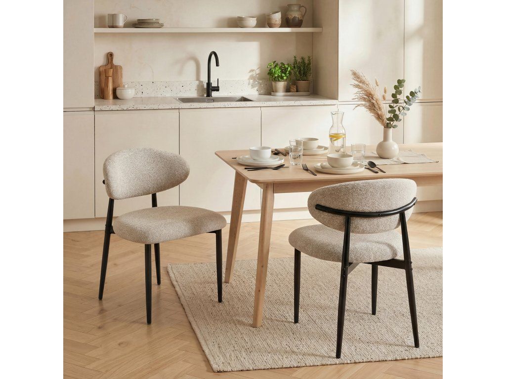 ✔ Tato moderní jídelní židle se vyznačuje béžovým čalouněním a černým rámem, díky čemuž je všestrannou stylovou volbou.