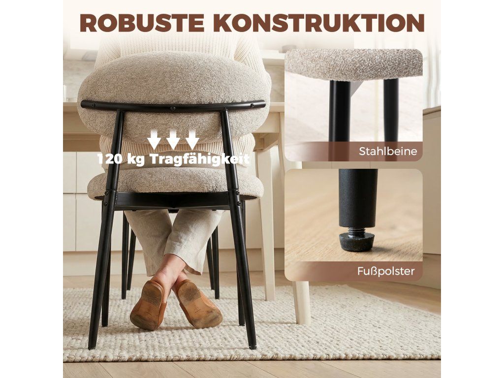 ✔ Tato jídelní židle je vybavena nastavitelnými nohami a zůstává stabilní i na nerovné podlaze.
