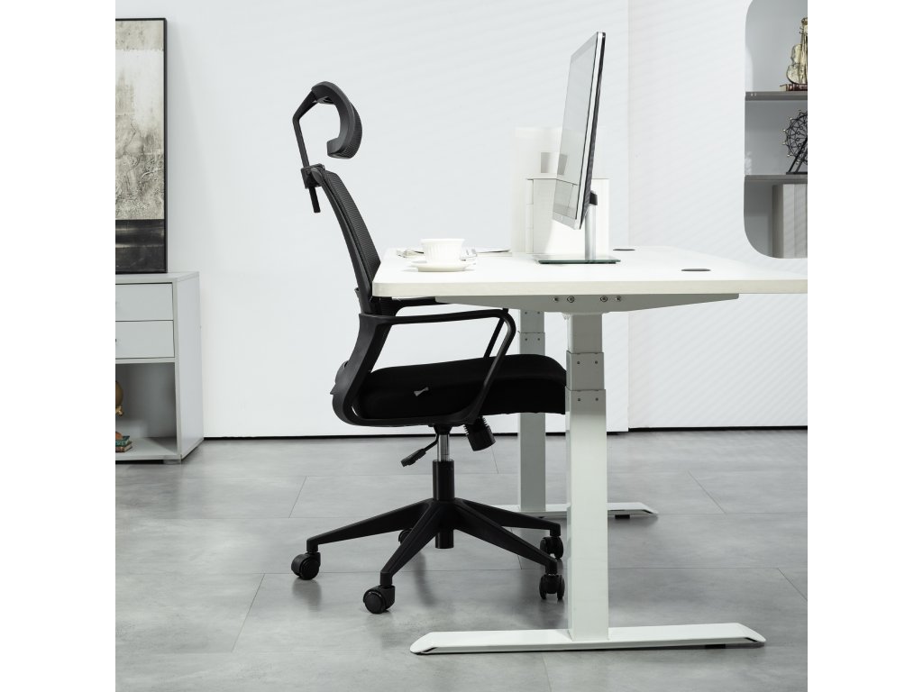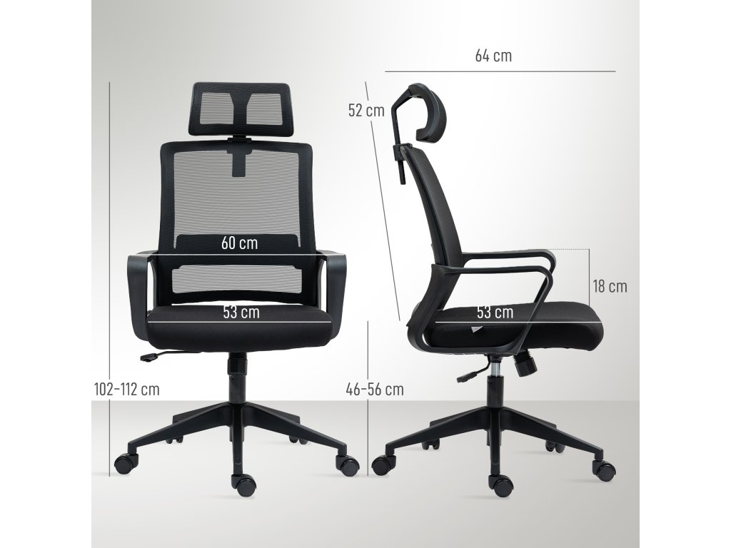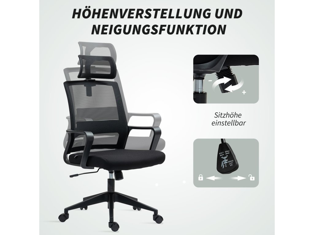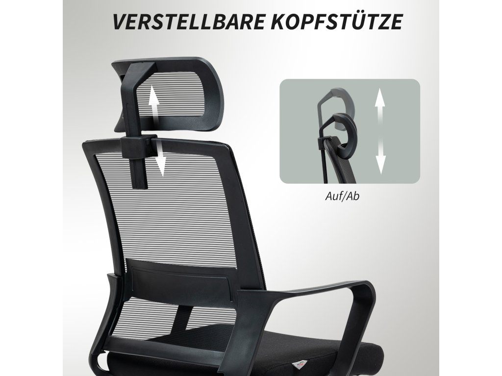 S kancelářskou židlí HOMCOM zažijete vítané pohodlí i při práci. Flexibilní opěrku hlavy lze otáčet a nastavit tak, aby poskytovala optimální oporu pro váš krk. Sedák z pěny s vysokou hustotou poskytuje celodenní pohodlí a prodyšná síťovina židle vás udrží v chladu, ať už váš pracovní den trvá jakkoli dlouho. Ideální společník pro efektivní práci a zároveň dobrý pocit!