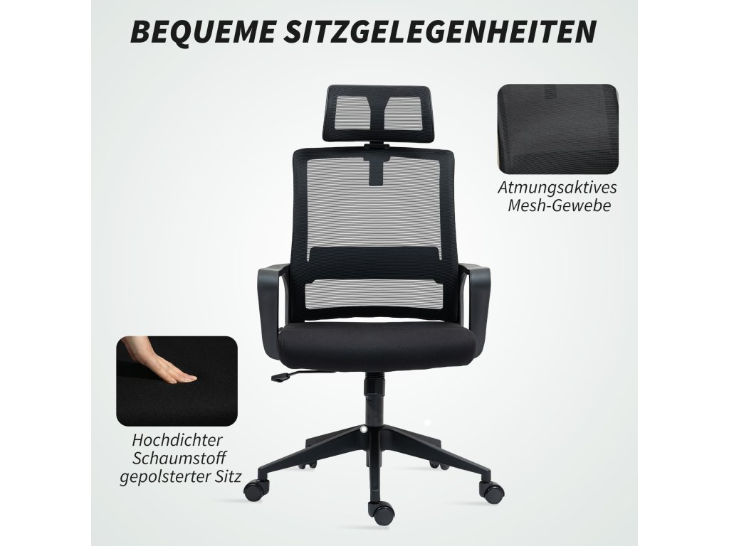 Kancelářská židle HOMCOM, nastavitelná kancelářská židle s opěrkou hlavy, otočná židle pro domácí kancelář, kancelář, černá