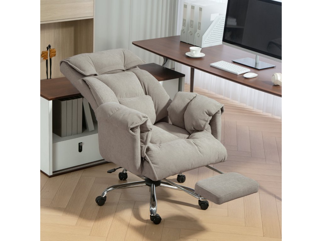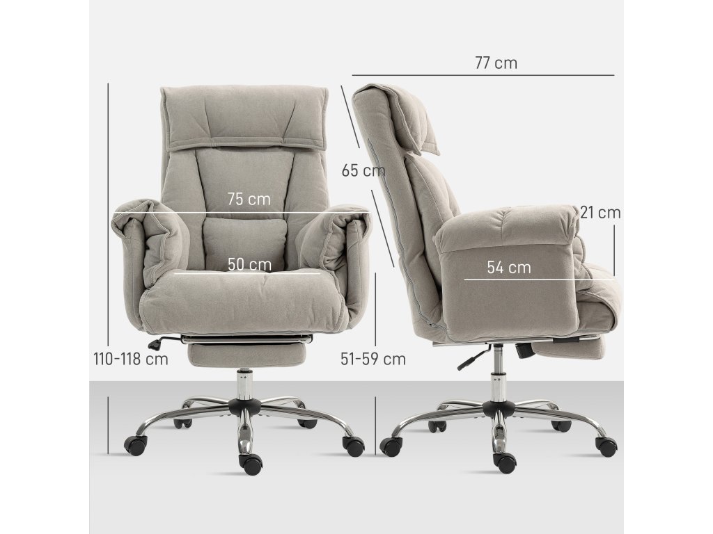 Kancelářská židle HOMCOM, Sklápěcí, Výškově nastavitelná, Kancelářská židle s područkami, Opěrka nohou, Vysoké opěradlo, 75 x 77 x 110–118 cm, Šedá