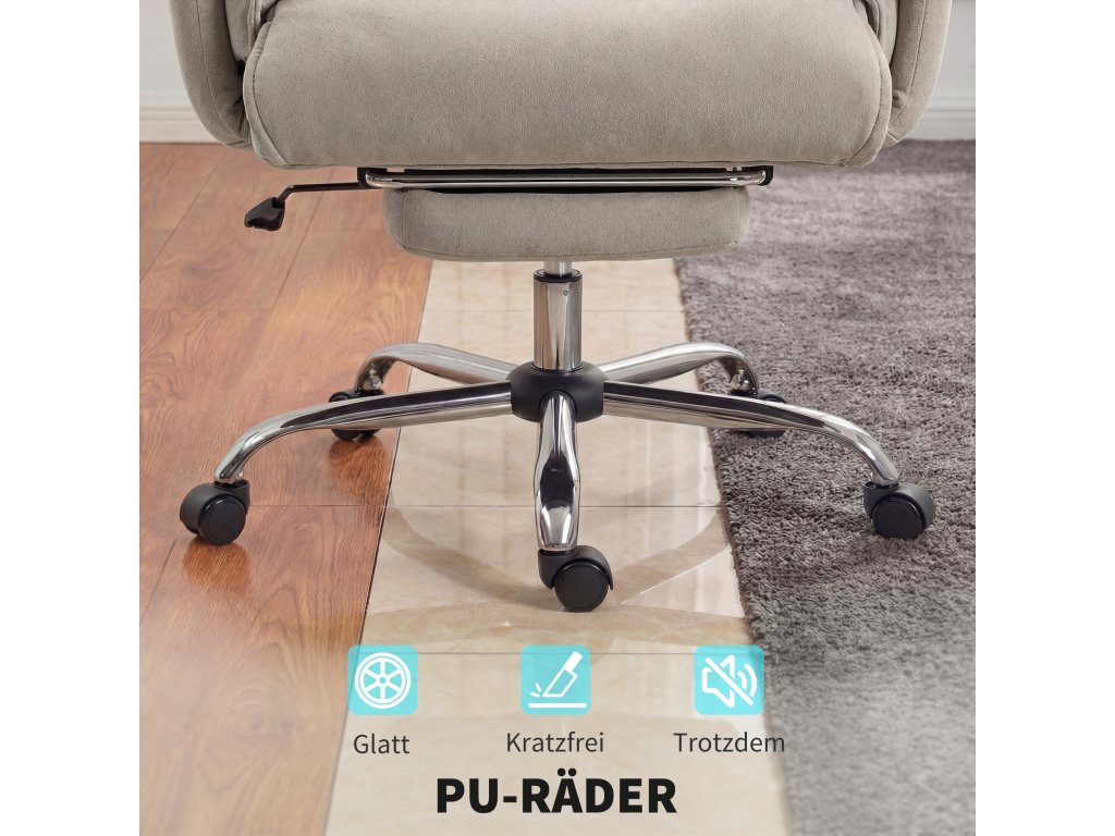 Dlouhé hodiny u stolu vás mohou ztuhnout a způsobit neklid. Kancelářská židle HOMCOM s podnožkou promění váš pracovní prostor v oázu pohodlí s měkkými polštáři a sametovým čalouněním pro celodenní relaxaci. Snadno přejděte ze soustředěné práce na relaxační přestávku díky třem polohám sklopení a výsuvné podnožce, zatímco tichá kolečka zajišťují plynulý pohyb bez rušivých vlivů. ... Popis: