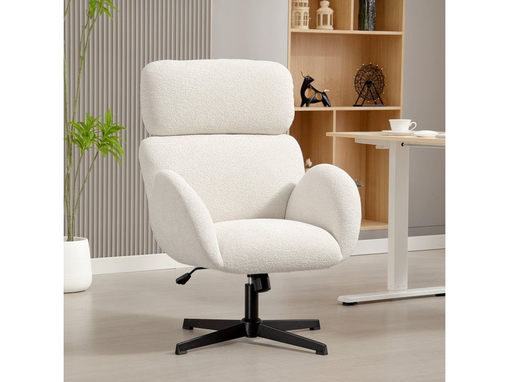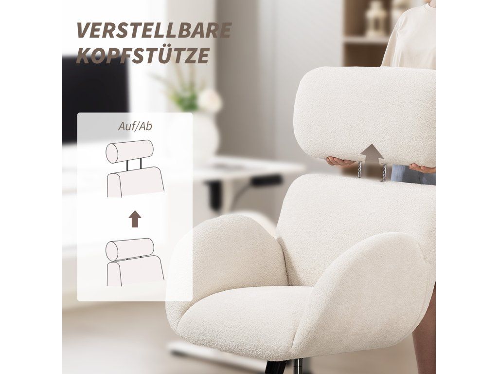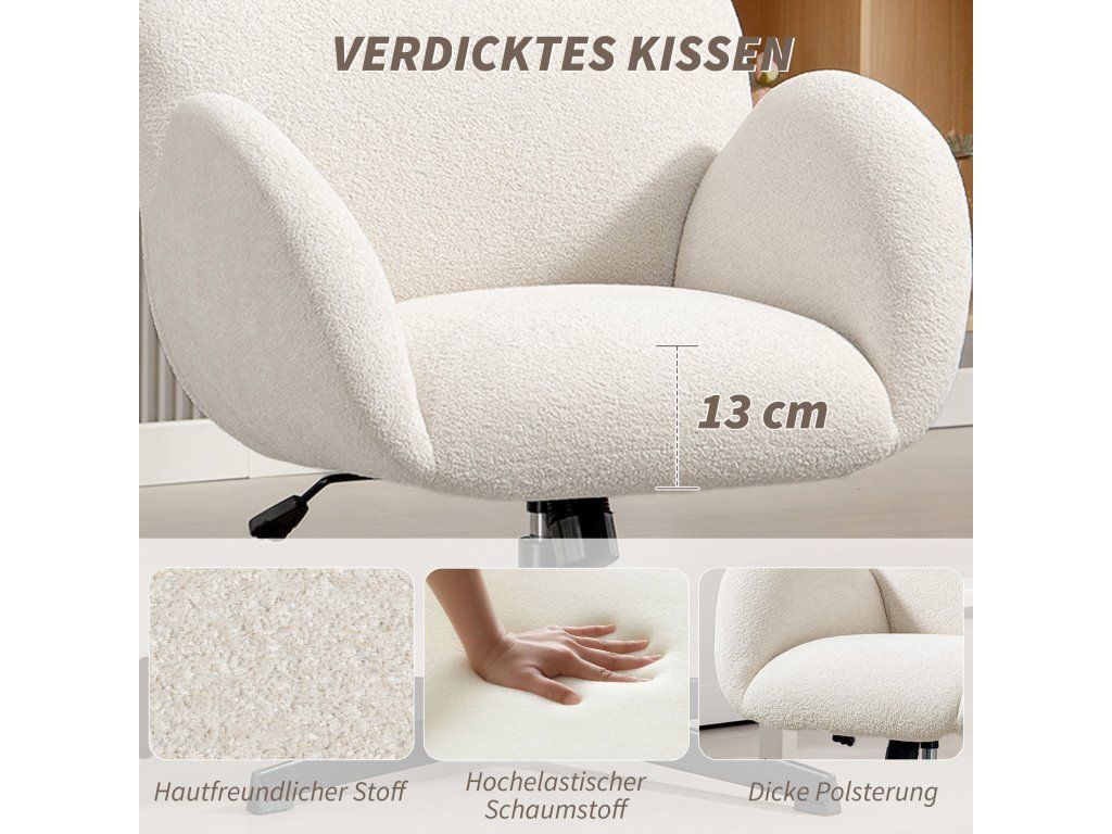 Kancelářská židle HOMCOM s potahem ze sametové látky, čalouněná židle s ocelovou podnoží, výškově nastavitelná kancelářská židle, krémově bílá