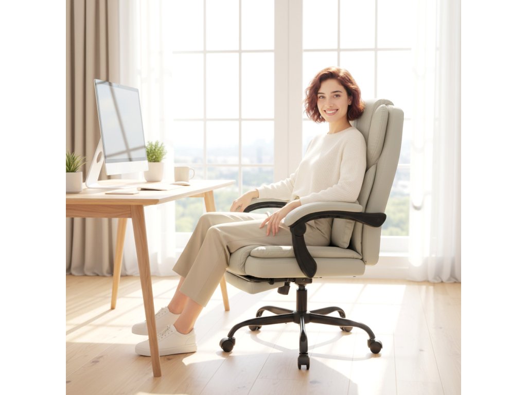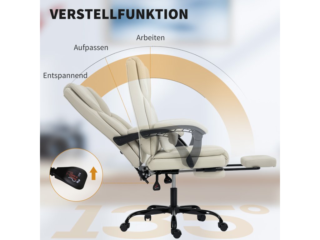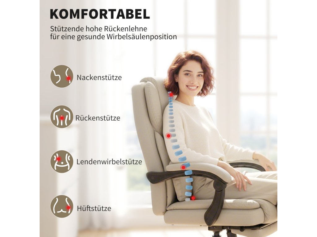 Potýkáte se s dlouhými pracovními dny a hektickým rodinným životem? Standardní kancelářská židle vám už nestačí a zanechává vás unavení a starosti se skvrnami nebo škrábanci od domácích mazlíčků. Tato kancelářská židle s podnožkou zrevolucionizuje váš každodenní režim: Opřete se a zdřímněte si díky 140° sklonu, zatímco umělá kůže vhodná pro domácí mazlíčky a pohodlné polstrování zajišťují trvalé pohodlí a bezproblémově spojují práci s relaxací.