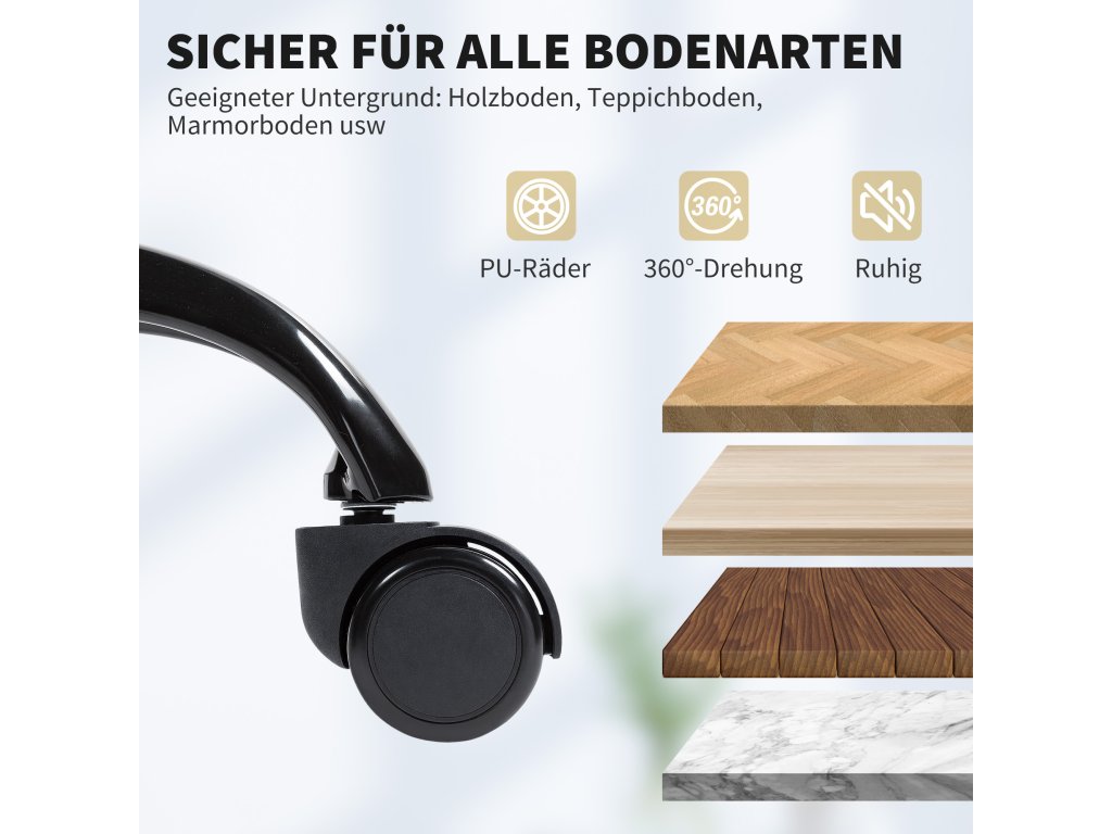 ✔ Otočná kolečka a sedák se přizpůsobí dynamickému kancelářskému prostředí. PU kolečka chrání všechny typy podlah před poškozením