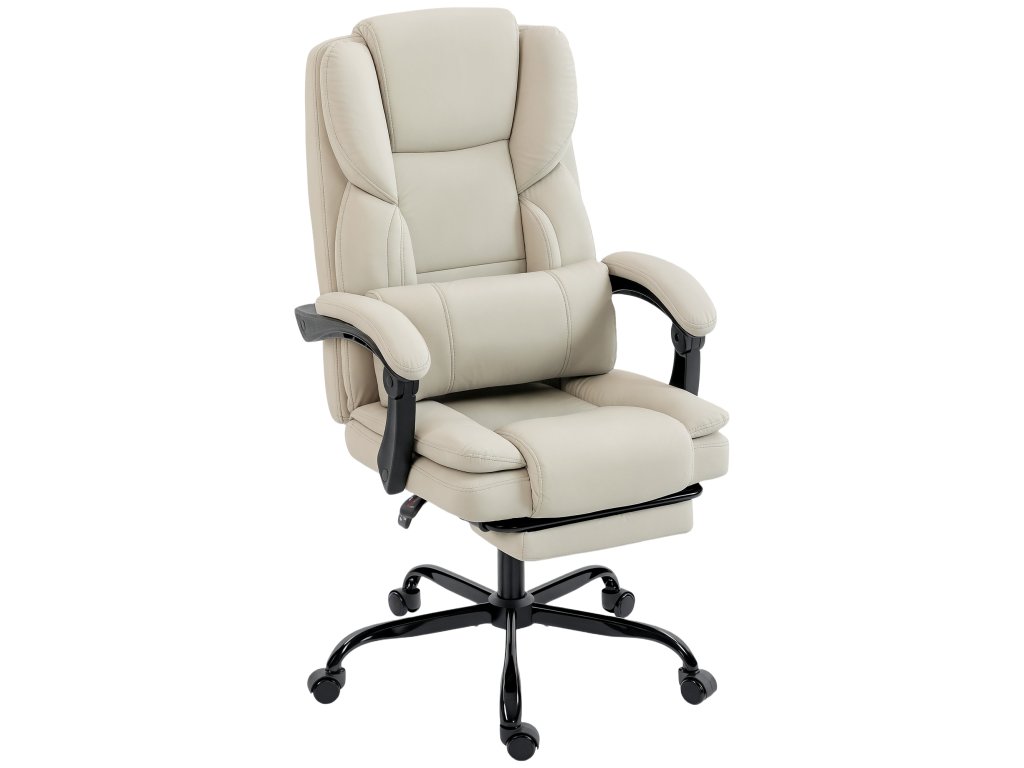 Kancelářská židle s čalouněním z umělé kůže vhodné pro zvířata, podnožka, výškově nastavitelná, kolečka, béžová