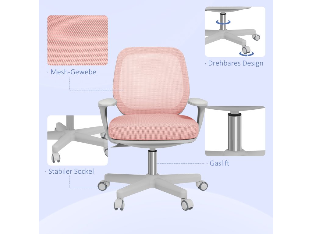 Kancelářská židle Vinsetto, ergonomická kancelářská židle s funkcí otáčení, výškově nastavitelná 55 x 48 x 82,5-94,5 cm Růžová