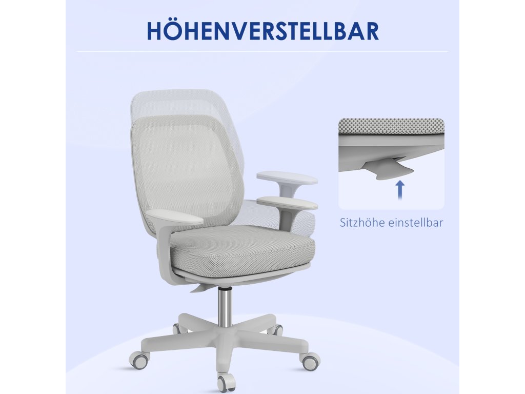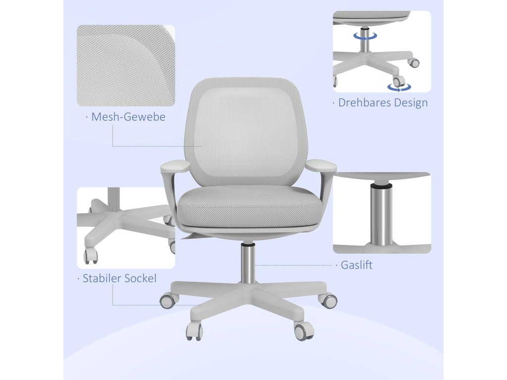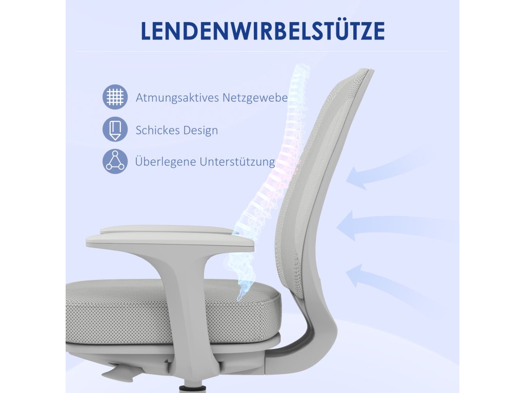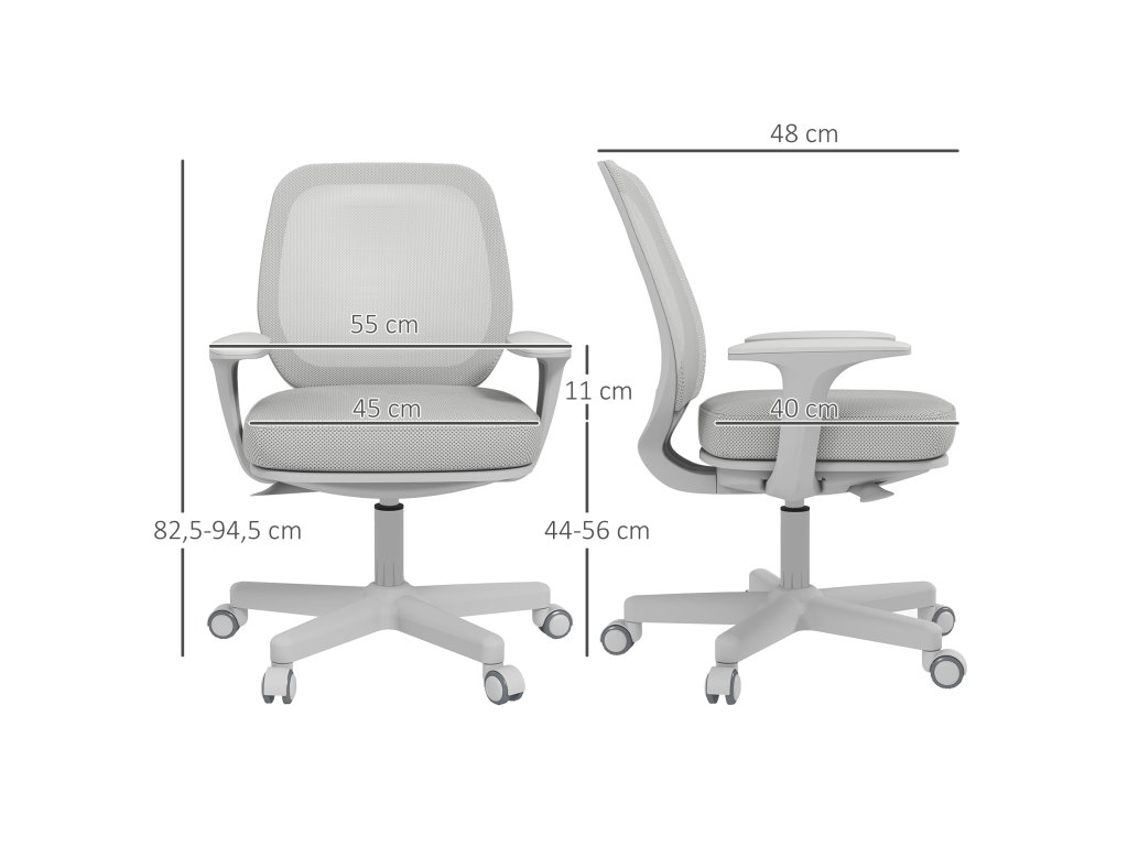 Kancelářská židle Vinsetto, ergonomická kancelářská židle s funkcí otáčení, výškově nastavitelná 55 x 48 x 82,5-94,5 cm Šedá barva